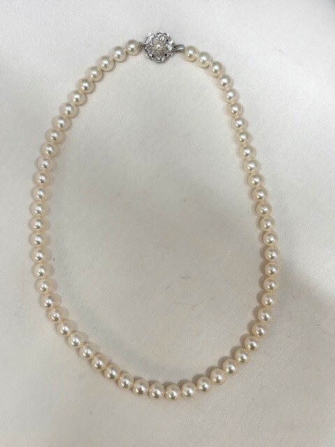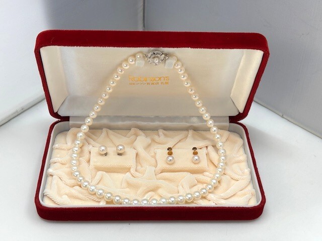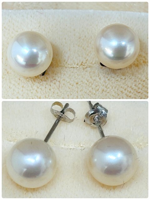 | 真珠/パールネックレス SV925金具ネックレス+K14WGピアス+K18イヤリング 3点セット ケース付き | ||