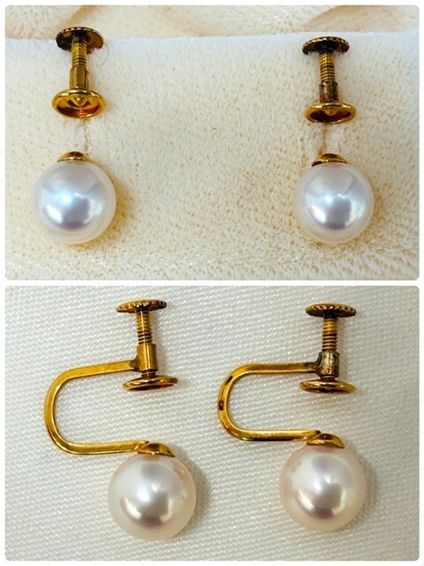 | 商品説明 | ※委託品等を出品している為、購入時期、使用頻度等不明 になります。こちらの商品に関しまして、専門的な事は 分かりませんので画像にて、ご判断出来る方のご入札 お願い致します。 自宅保管品の品物となります。 ネックレスですが、見た限りではダメージは無いかと 思われますが、中古品となりますのでご了承の上 宜しくお願い致します。 詳細は、画像にてご確認下さい。 ・サイズ・ ネックレス全長:約43.5cm 重量:約33.2g パールの大きさ:約0.7cm~0.75cm 留め具:SILVER K14WGピアス 重量:約1.5g パールの大きさ:約0.76cm~0.77cm K18イヤリング 重量:約 1.9g パールの大きさ:約0.7cm~0.71cm ※素人採寸の為、多少の誤差はご了承下さい。 ※落札お手続きの際に、ゆうパックと普通郵便の定形 定形外と間違えて、お手続きされる方が増えていますので お気をつけ下さい。 ご不明点がございましたら、ご質問下さい。 ------------------------------------------------------------ 画像に写っているものが全てになります。 | |