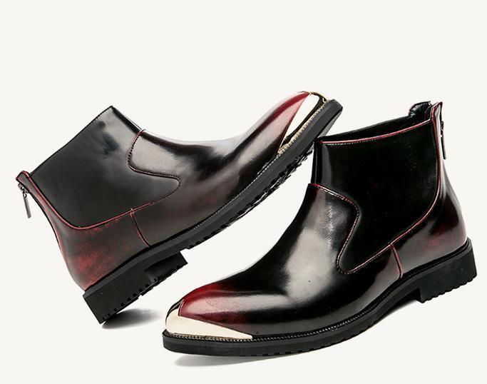 メンズ ビジネス PUレザー シューズ レッド 26.0㎝ 革靴 靴 カジュアル 屈曲性 通勤 軽量 インポート品【n160】