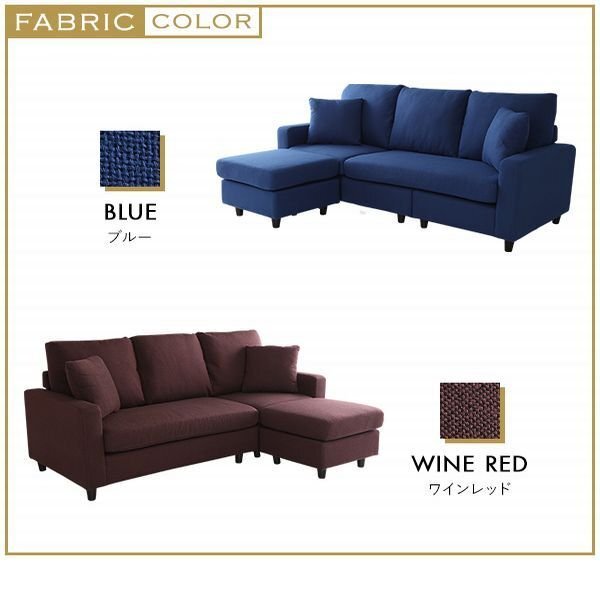 | 【カラー】 ブラック、ブルー、グレー、ライトグレー PVCブラック、PVCブラック&ベージュ、PVCホワイト、ワインレッド 【サイズ】 外寸:幅183cmx奥行80cm~133cmx高さ82cm 【重量】 46kg 【素材】 (構造部材) 本体:木製フレーム 脚部:天然木(高さ8cm) (張り材) ファブリック:ポリエステル 100% 合成皮革:塩化ビニル樹脂 (クッション材) Sバネ、ポケットコイル、ウレタン 【梱包】2梱包でお届けします。 2-1 サイズ:幅117x奥行77x高さ46.5cm、重量:31kg 2-2 サイズ:幅66x奥行77x高さ46.5cm、重量:20kg 【組み立て品】 お客様による組み立てが必要です。 【ご注意】サイズ、重量は概算です。 |
