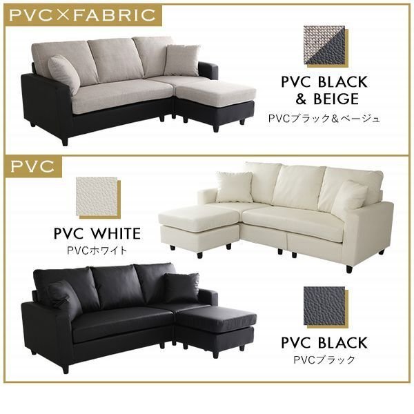 | 【ポイント】 カウチにもオットマンにも、気軽にスタイルチェンジできる3人掛けソファです。 ポケットコイルとS字バネのWクッション採用で、しっかりとした弾力感のある座り心地です。 PVCやファブリックなど豊富な8色展開、組み立ても簡単です。 |