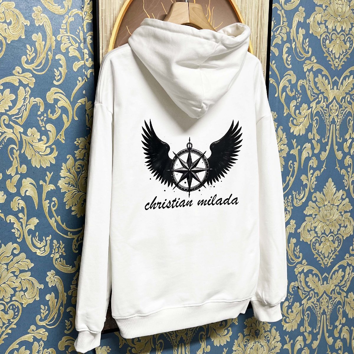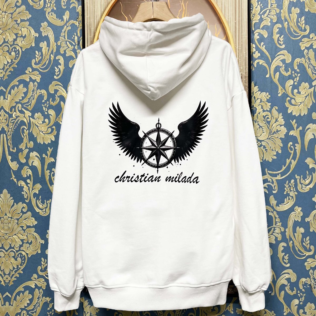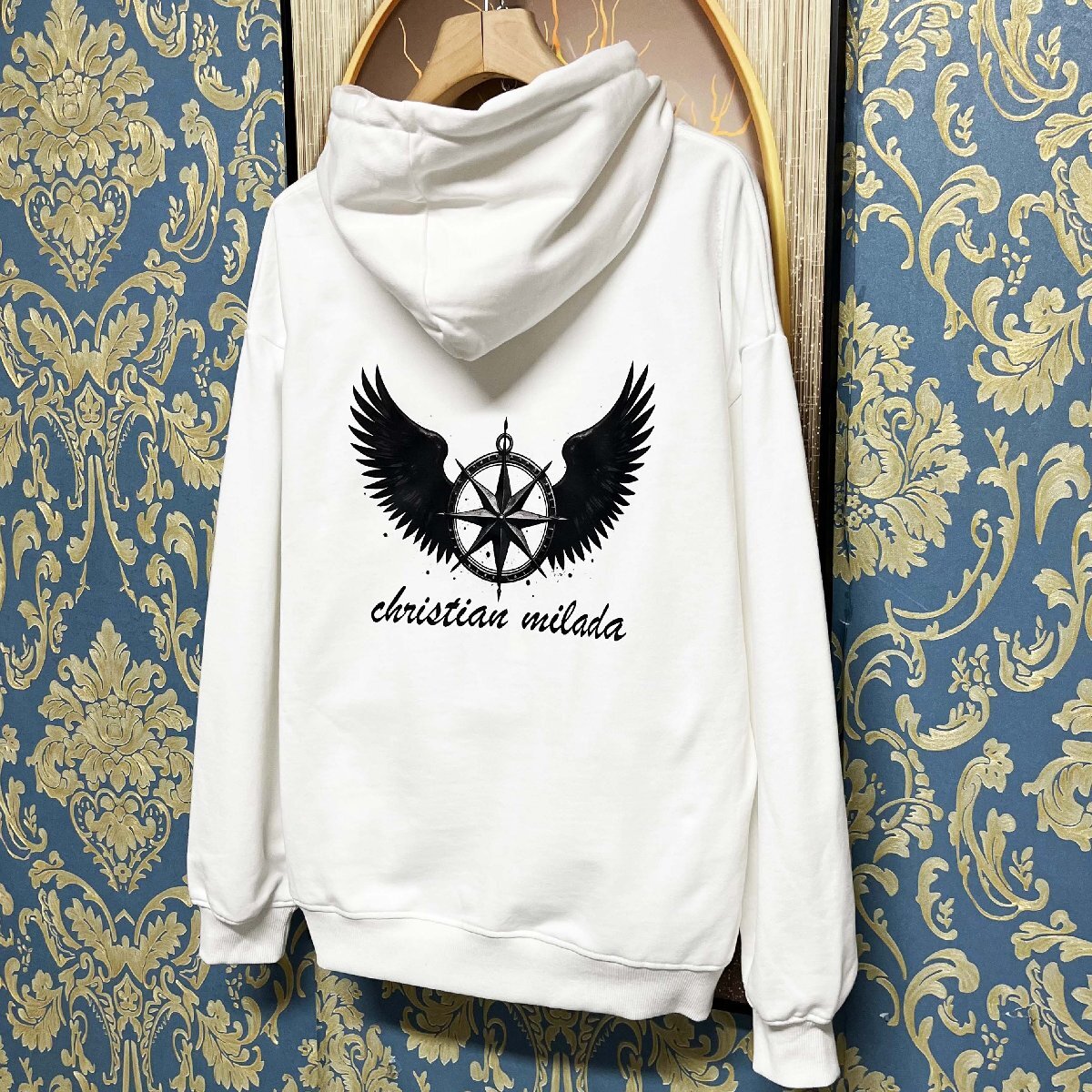 定価4万★christian milada・ミラノ発・パーカー★コットン100% ソフト 保温 翼柄 カッコイイ ストリート スウェット トレーナー 長袖 春秋 M/46サイズ