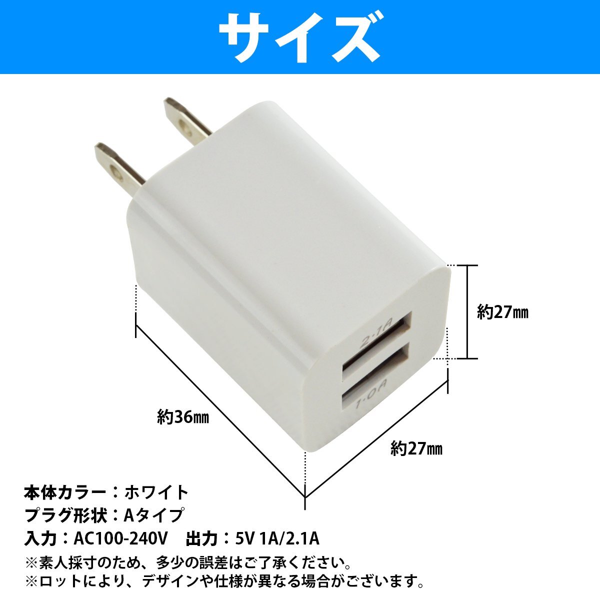 スマートフォン 充電器 ACアダプター USBポート 2口 2.1A 白 iphone スマホ 充電 USB2ポート コンセント コネクター