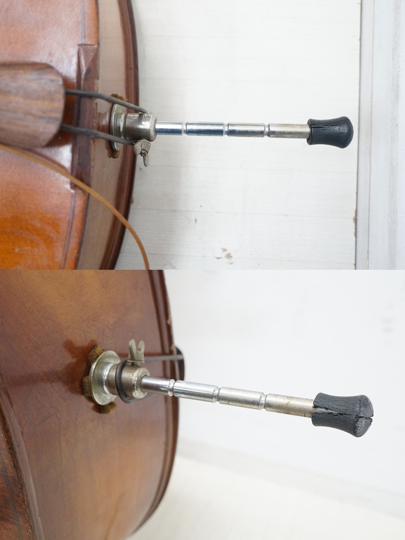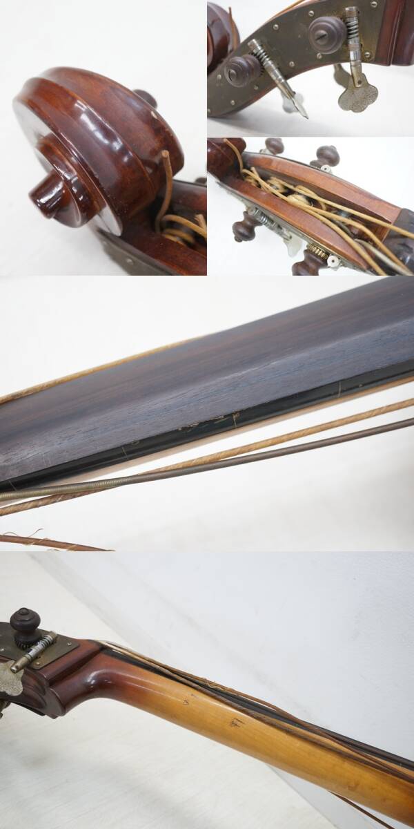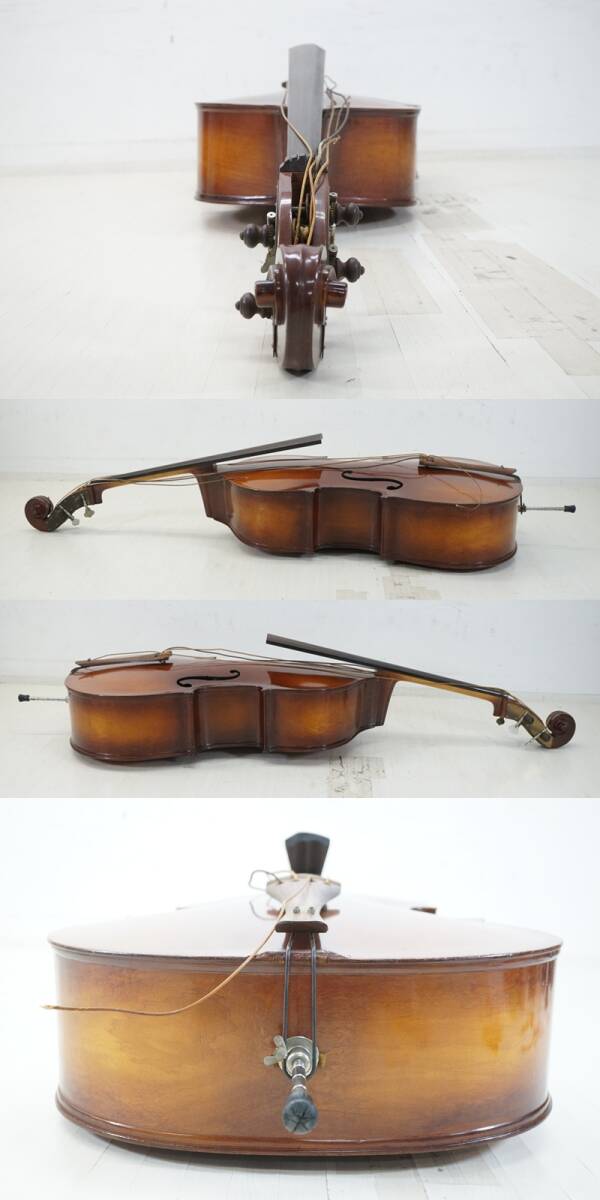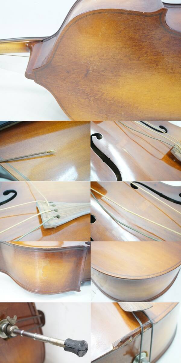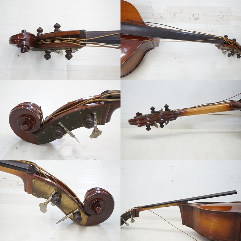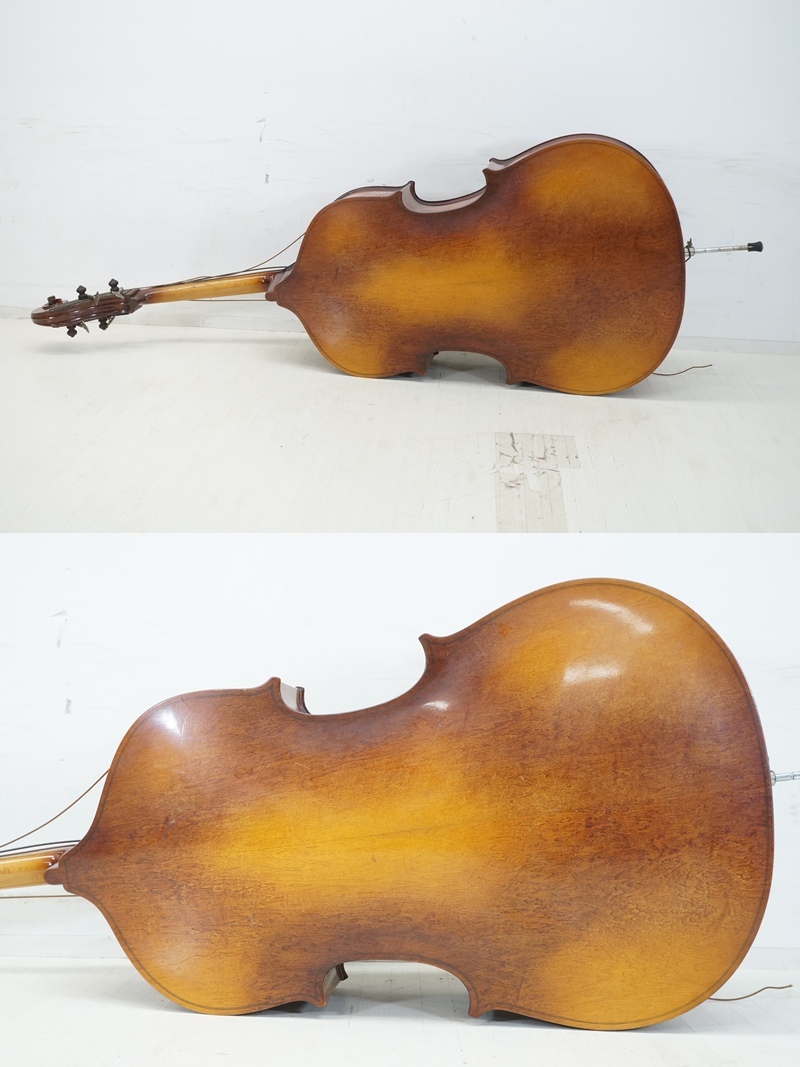 ■東ハ:希少【チャキ弦楽器】chaki BAS コントラバス 1900年代 全高約200.5㎝ ウッドベース DRESDEN駒付 茶木絃楽器製作所 弦楽器■ 茶木絃楽器製作所「 chaki BAS コントラバス 」1900年代製になります。 【サイズ】 (約)高さ200.5 × 幅66.0 × 奥行38.0 cm 【コンディション】 中古のお品となります。 付属品は写真にあるものが全てです。 ※スタンドは撮影用の備品となります。 ※弦の千切れ、キズ・ケズレ・表面材のハガレなどが複数、 金具のサビ・ゴムのヒビ割れなどの経年劣化がございます。 ※弦がございませんので、音出し未確認のお品となります。 当方は専門業者ではございませんので、仕様・チューニングや調整など詳しくはわかりかねます。 現状コンディションでのお取引きとなりますので、ご了承ください。 当店では、古いものを扱っておりますため、時代経過による汚れ・スレなどがございます。 新品(完全品)をお求めの方は、ご入札をお控えください。 状態につきまして、不明な点などございましたら商品説明欄の質問欄より事前にお気軽にご質問ください。 画像をよくご覧になられお客様のご納得の上、責任を負える範囲でのご入札をお願い致します。 ■商品画像について■ ご使用モニター環境などによっては、多少色合いなどが異なって見える場合がございます。 予めご了承いただけますようお願い申し上げます。 商品画像をよくご確認の上、ご参加ください。 [管理No.25110714VS] |