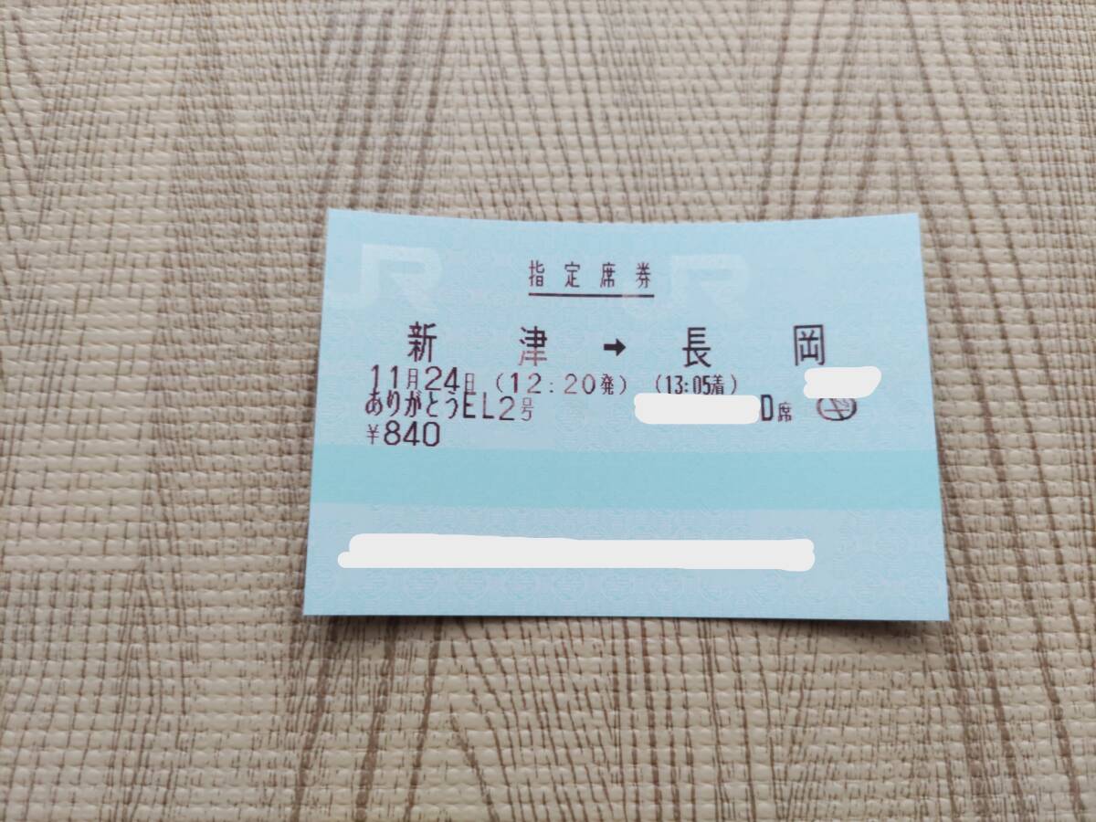 【窓側】11/24 ありがとうEL2号 新津→長岡 普通車指定席大人1名 EF64・EF81 ラストラン 窓側 D席