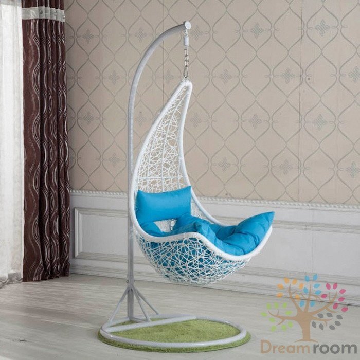 お洒落な ハンギングチェア クッション付 ホワイト 042-02 ハンモックチェア ゆりかごチェア 吊かご アジアン 1人掛け ソファ
