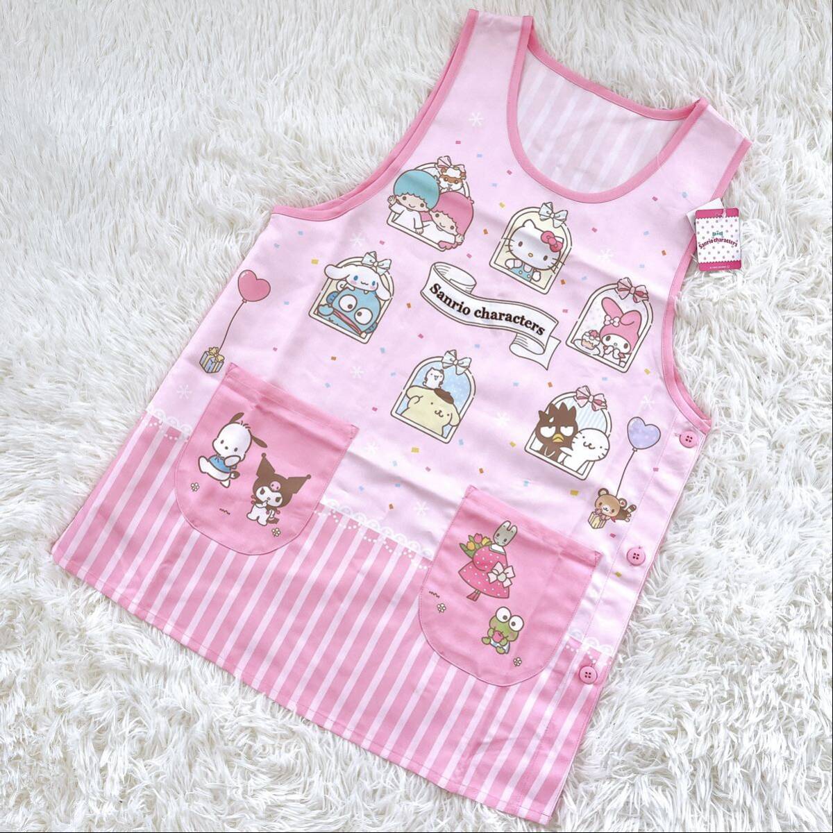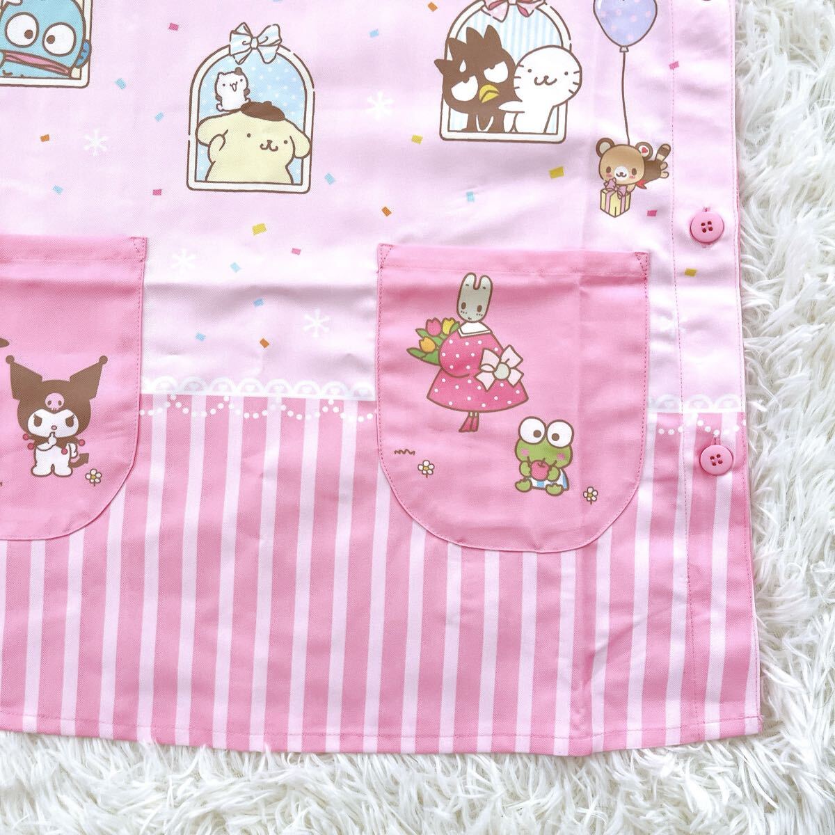 エプロン/こぎみゅん/サンリオ/Sanrio/サンリオキャラクターズ/M〜L/M/Mサイズ/L/Lサイズ/ピンク/チェック/キティちゃん/ハローキティ/マイメロディ/クロミ/ハンギョドン/シナモロール/シナモン/キキララ/バツ丸くん/クロミ/ポチャッコ/ポムポムプリン/cheery chums/チアリーチャム/ウィッシュミーメル/キャラクター/新品/未使用/美品/タグ付/タグ付き/タグあり/タグ/レディース/保育士/保育園/幼稚園/看護師/教諭/教員/介護士/ボタン