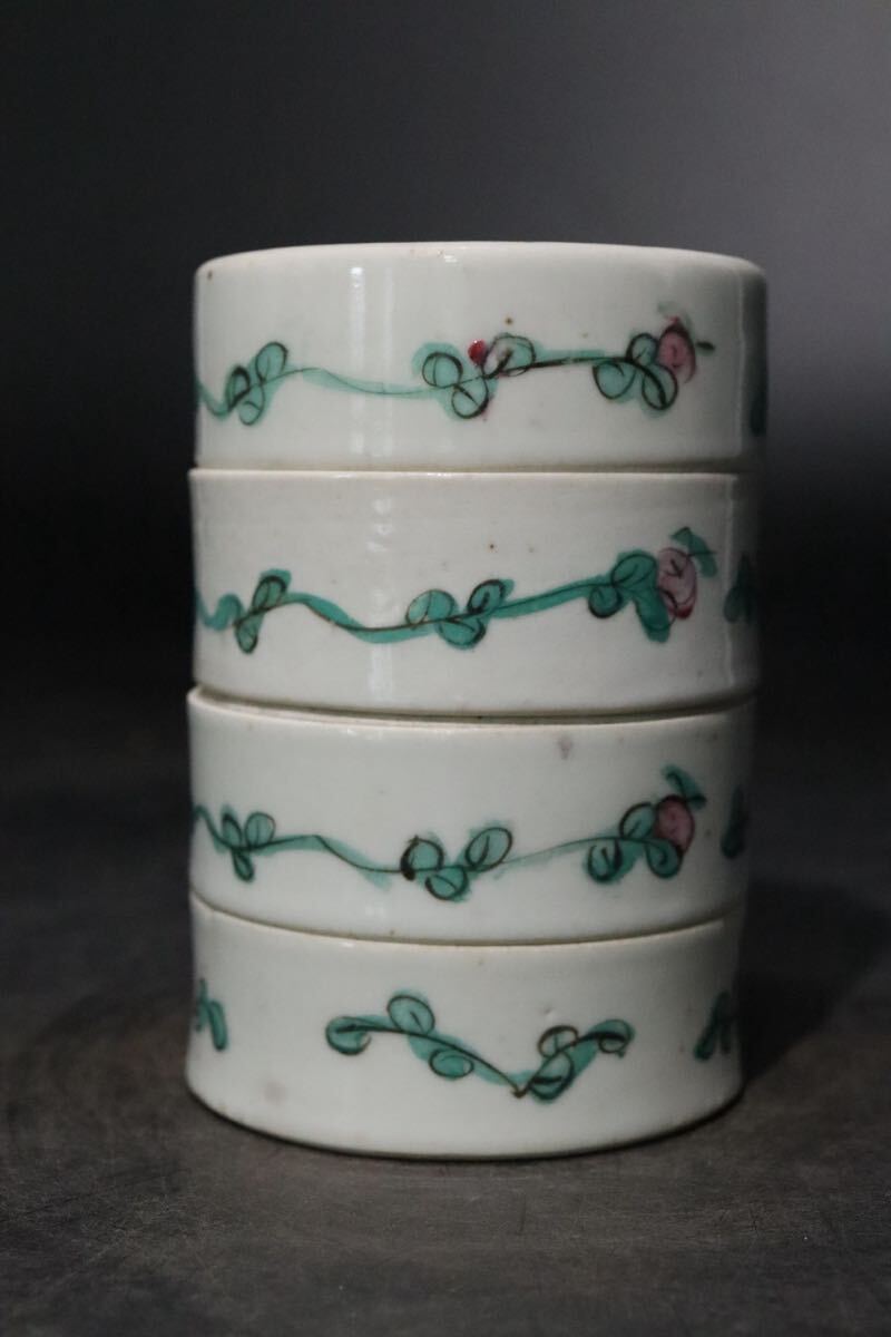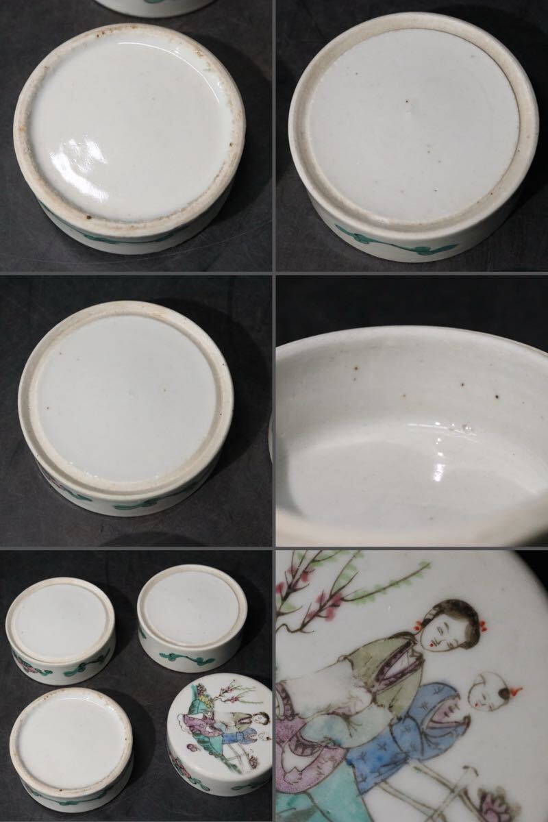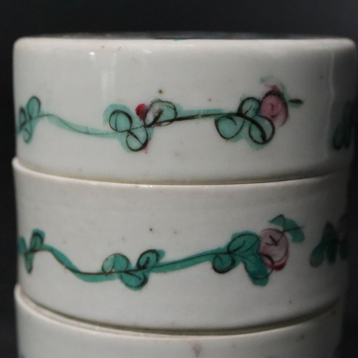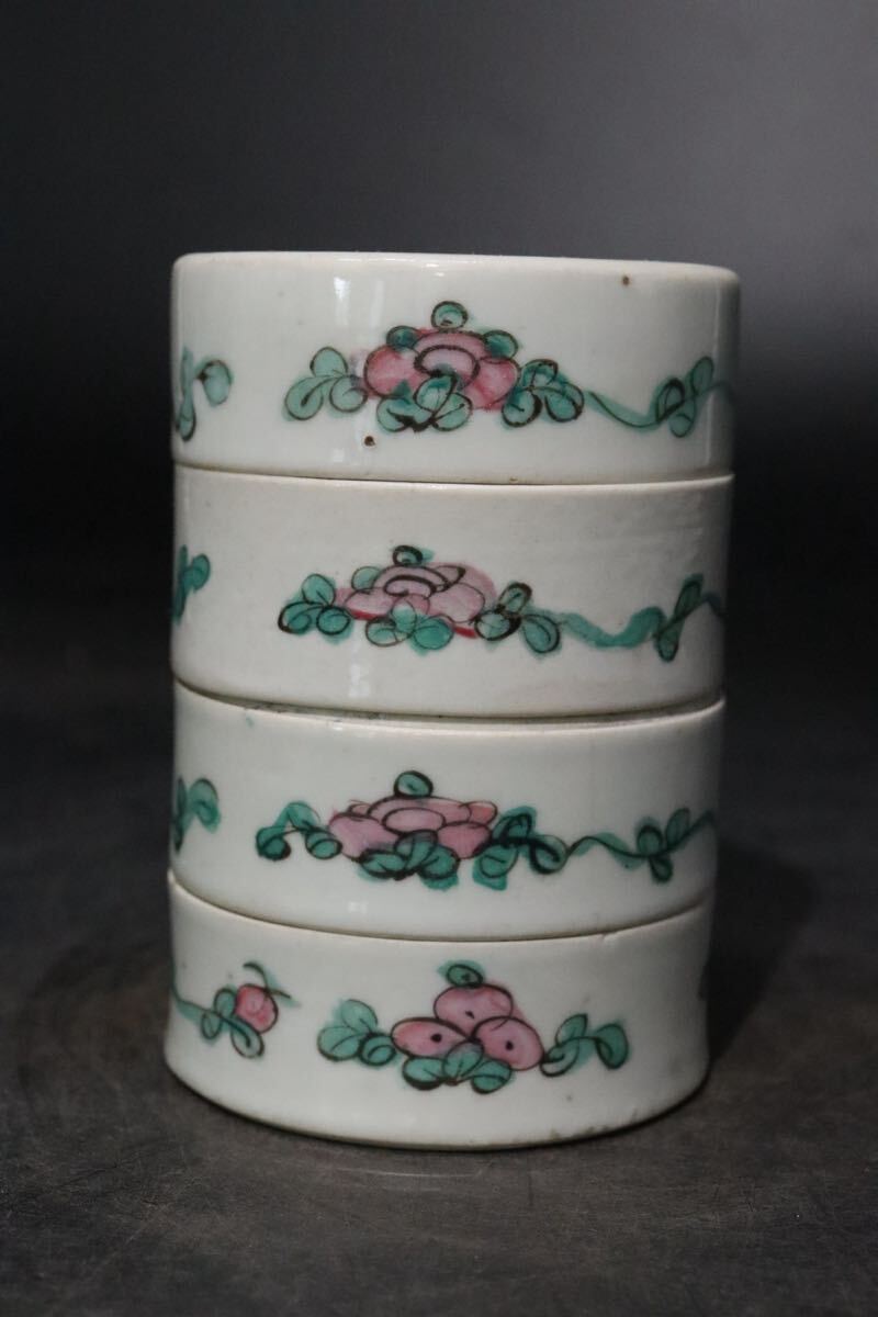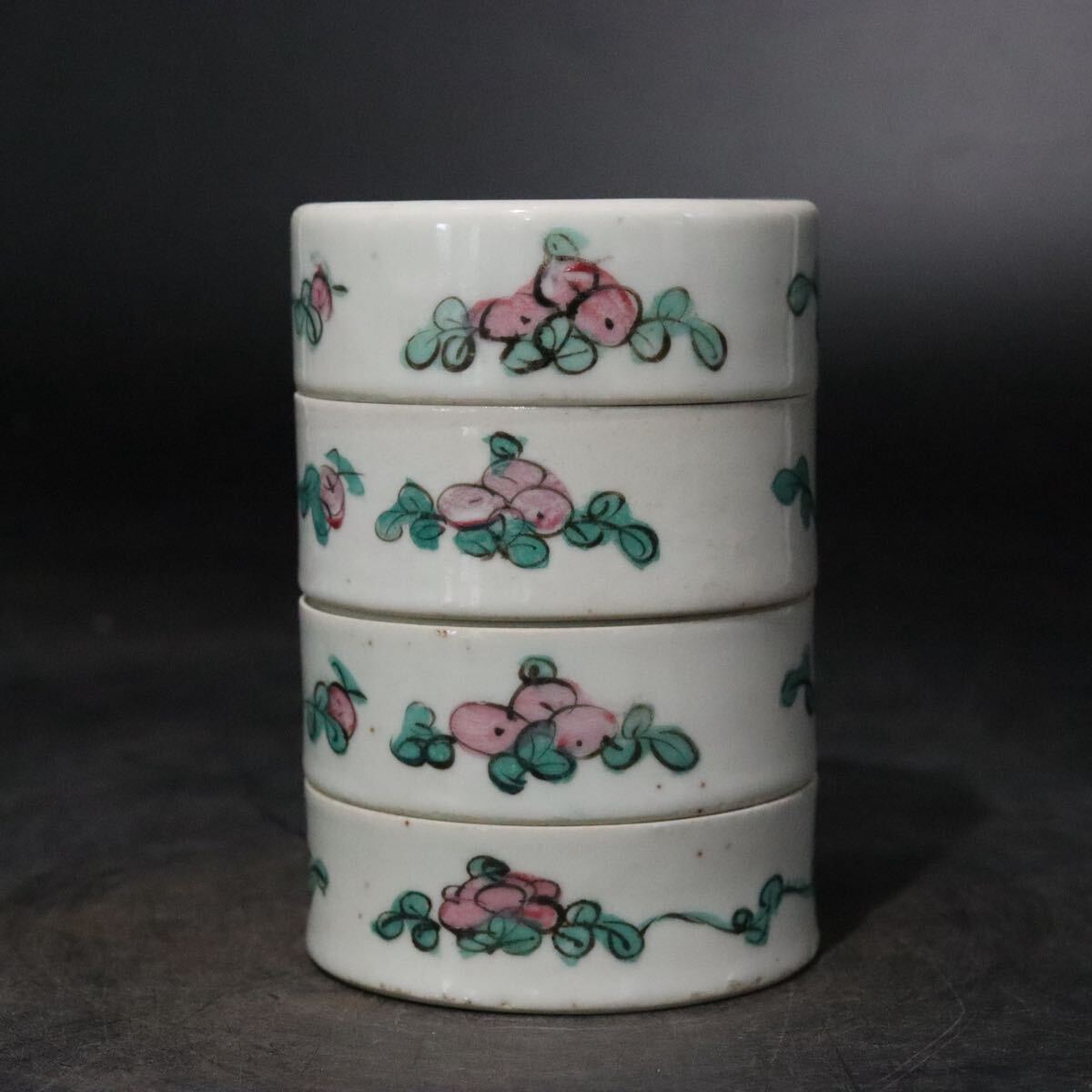 | 時代 中国 民国時代 頃 色絵 人物図 四段 蓋物 / 中国美術 五彩 墨彩 煎茶道具 .B1393 |