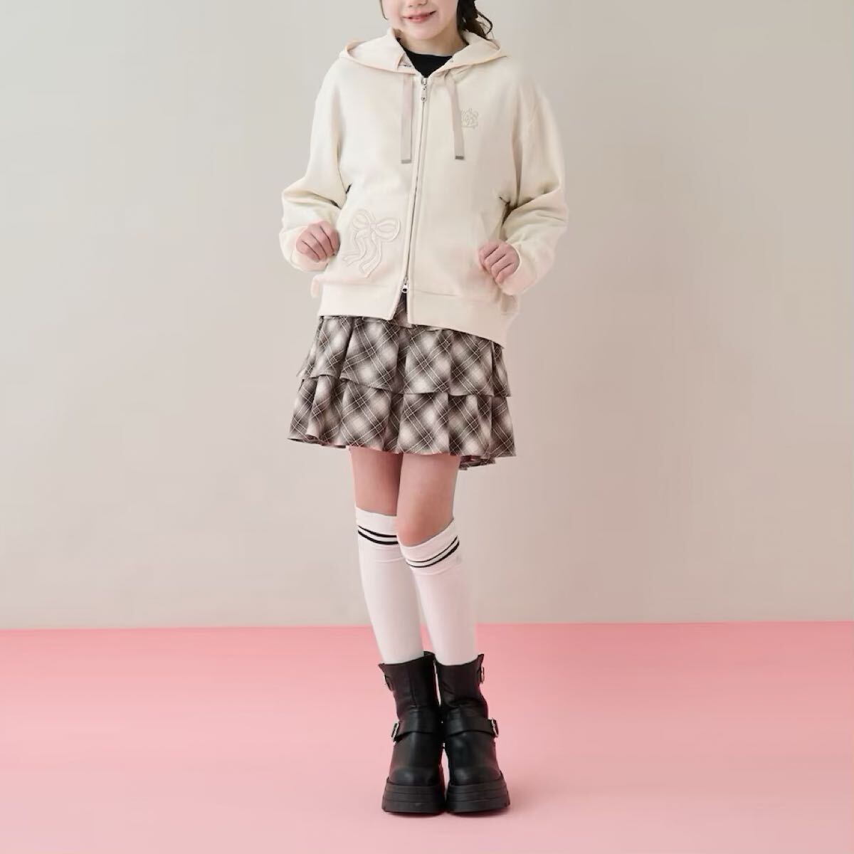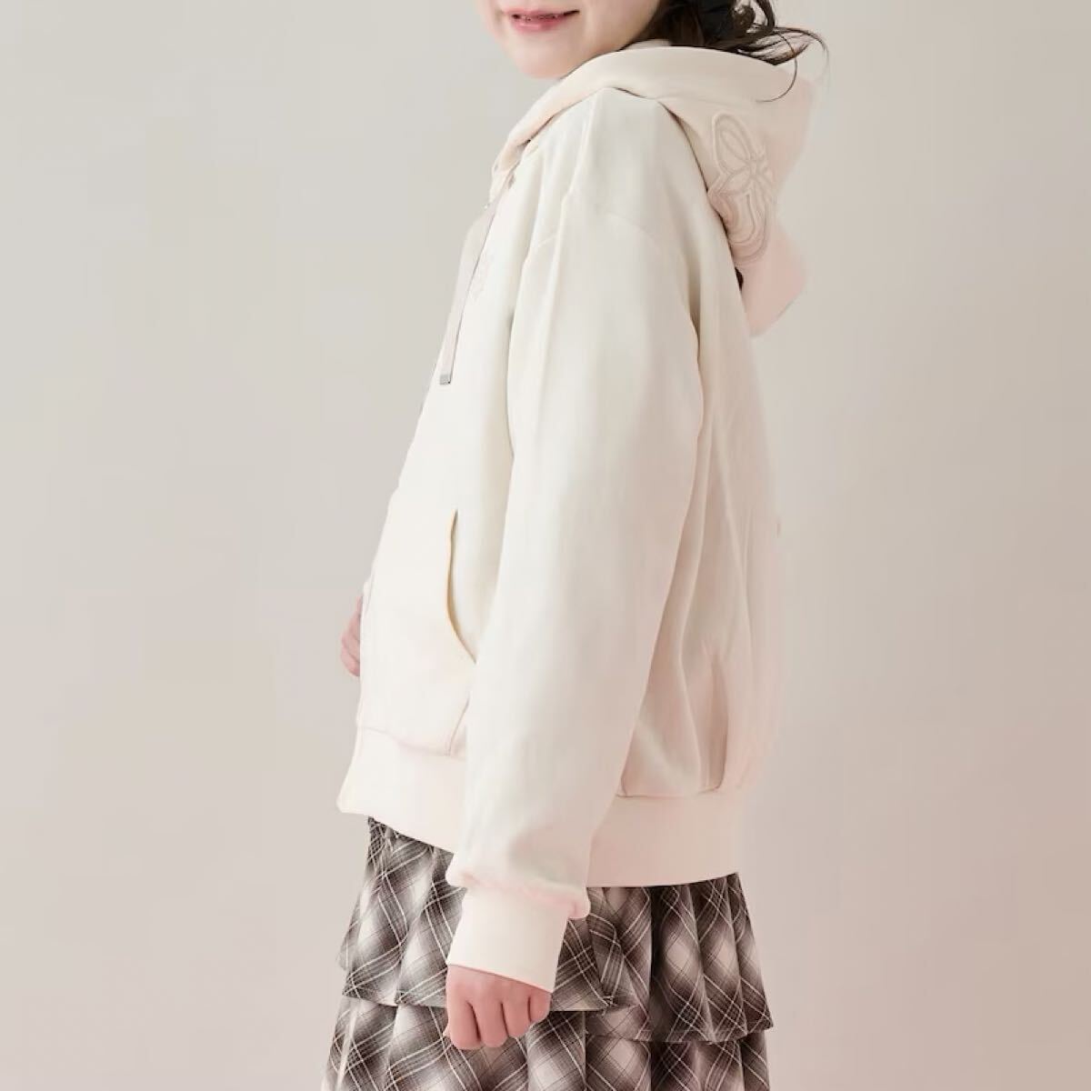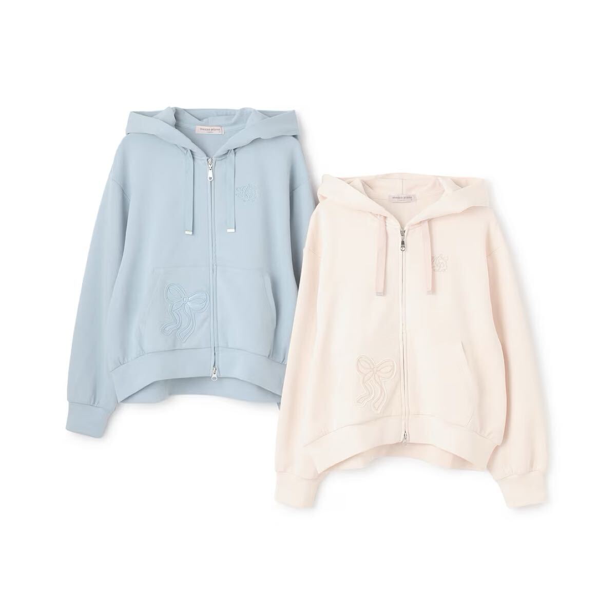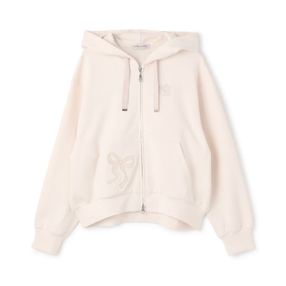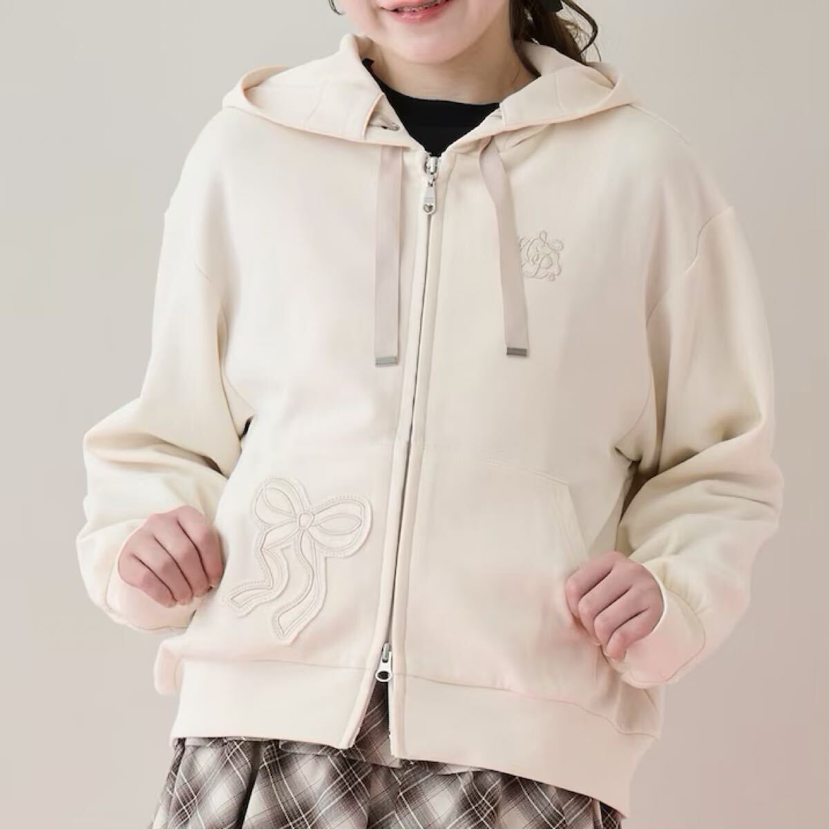 リボンアップリケWジップパーカ、アイボリー色になります。新作です♪