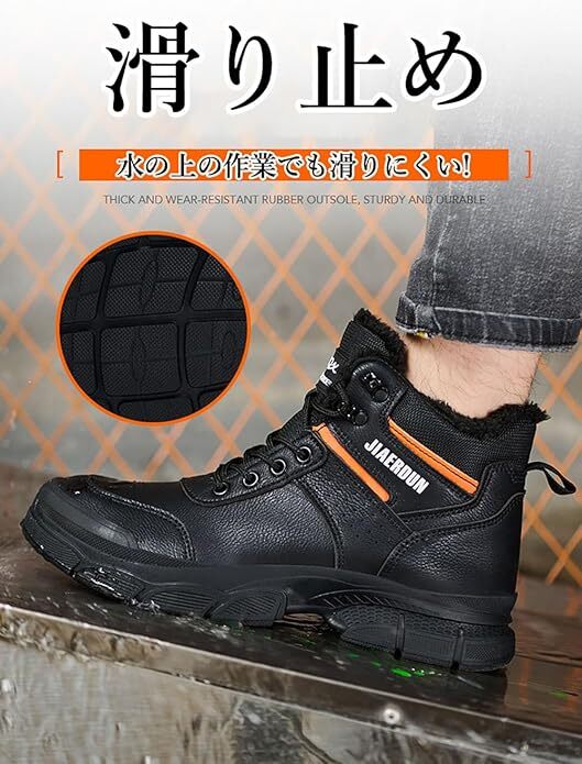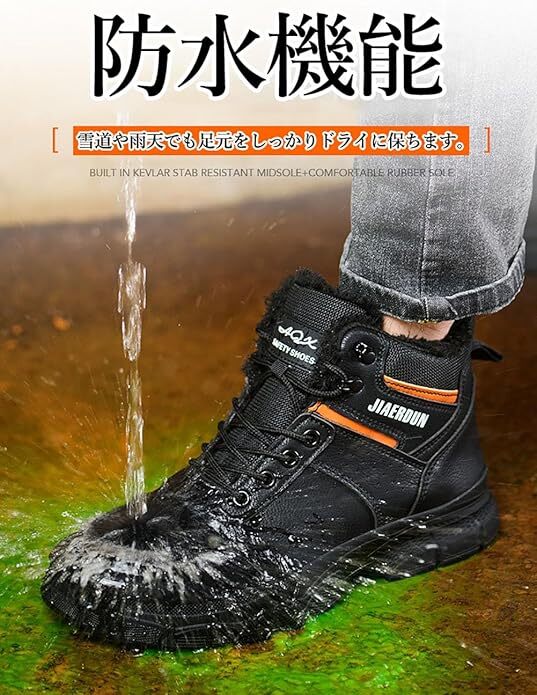 防寒安全靴 冬用 防水 あんぜん靴 寒冷地仕様 ハイカット セーフティシューズ 軽量 樹脂先芯入り 作業用 黒 サイズ:26.5cm
