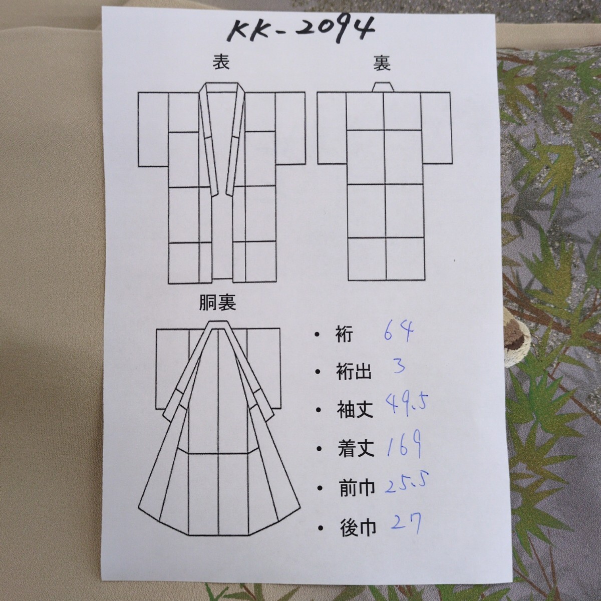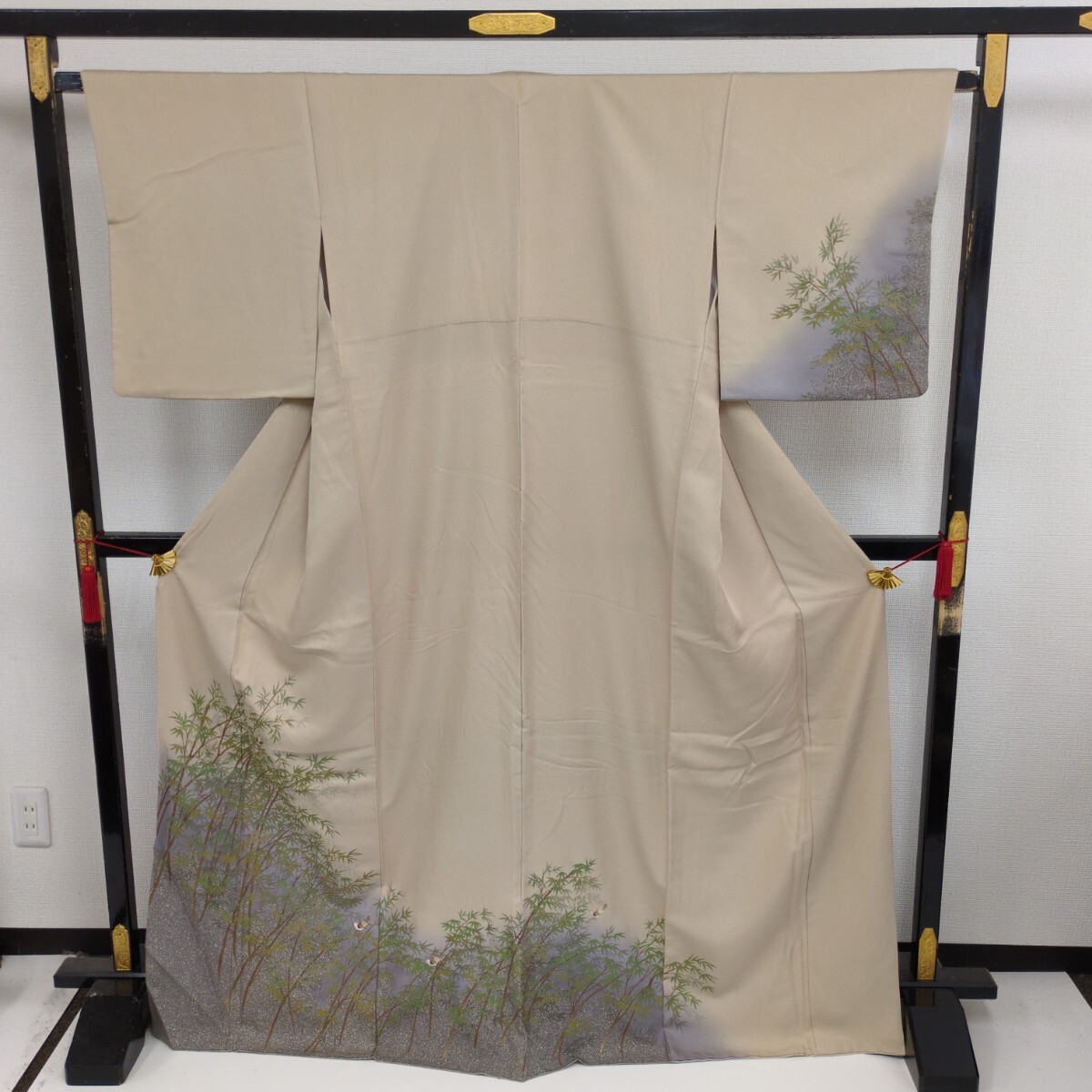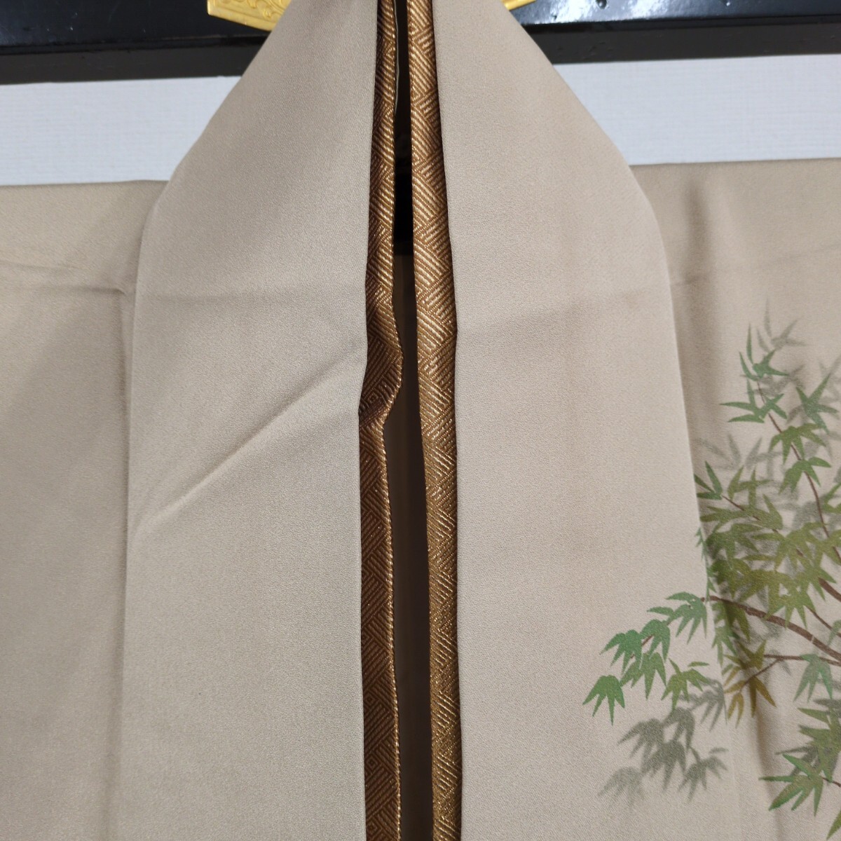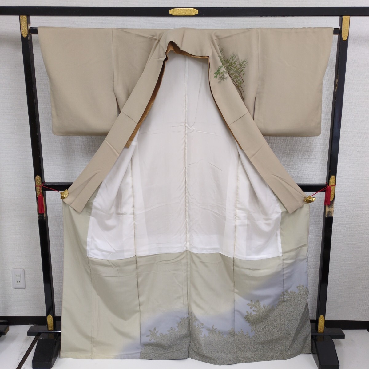 【楓】逸品 染めに刺繍 付け下げ 正絹 紋なし 枝に鳥 袷 着物 KK-2094