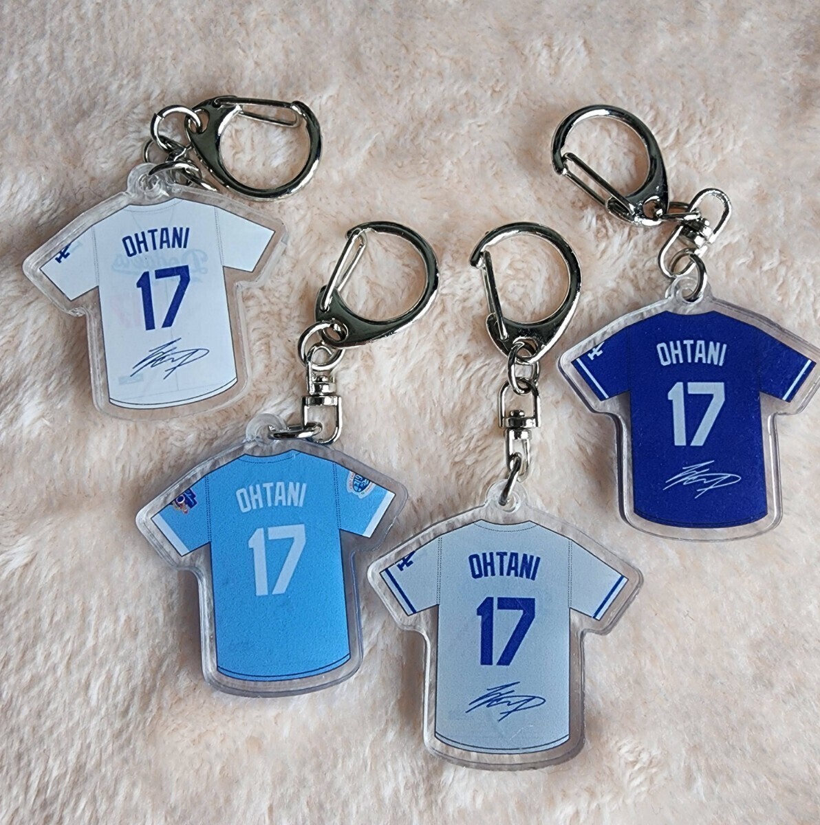 ロサンゼルス・ドジャース ユニフォームキーホルダー 大谷翔平 LAA キーホルダー メジャーリーグ 直径4cm キーリング 4点セット