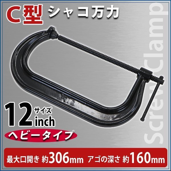 | 商品名 | 送料無料 シャコ万力 C型 最大口開き約306mm アゴ深さ約160mm 12インチ ヘビータイプ 強力 深型 クランプ 首振り式 皿 板クランプ スチール製 炭素鋼 作業 工具 締め付け 固定工具 締め具 ワイド 穴あけ 溶接 木工 cshakoh12inch |