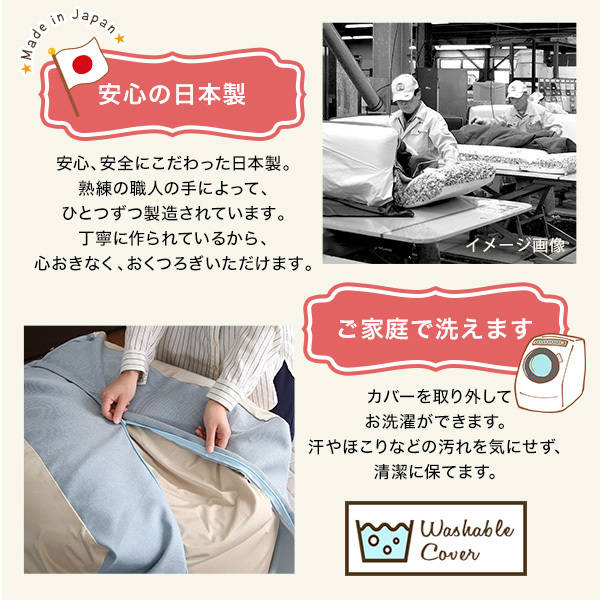 【ポイント】 2wayで使える、洗えるカバー付きビーズクッションです。 ヘタリに強い新素材高弾性ウレタンフォームを配合。 高品質な日本製で、2種類のカバー生地が伸縮性を調節します。 |