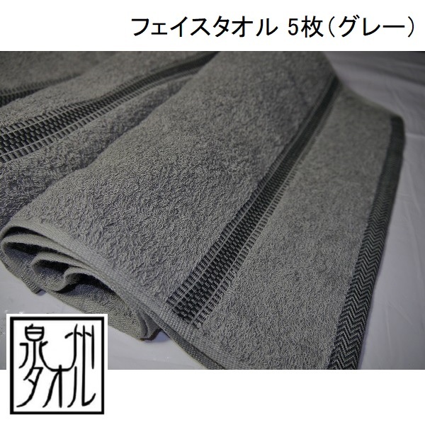 5枚組(グレー)泉州タオル フェイスタオル 厚目 300匁 ふんわり ボリューム有り 日本製 洗顔 毛染め たおるマフラー 新品 まとめて 返品可