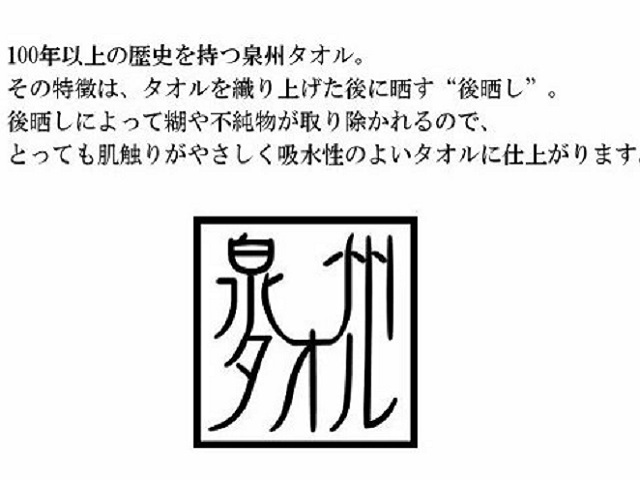 日本のタオル産業発祥の地、大阪府南部の泉州地域で織られた安心の国産タオル