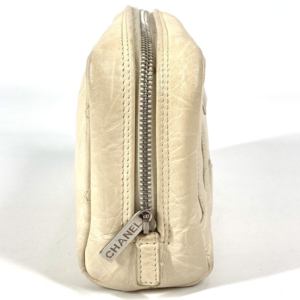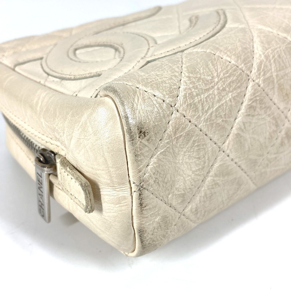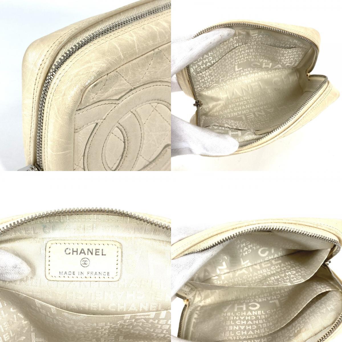 CHANEL シャネル CC ココマーク ロゴ メイクポーチ 化粧ポーチ マルチポーチ カンボンライン ポーチ ホワイト レディース【中古】