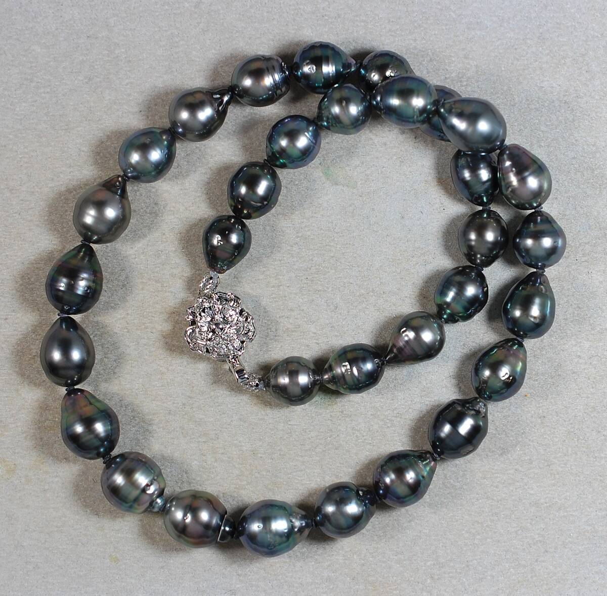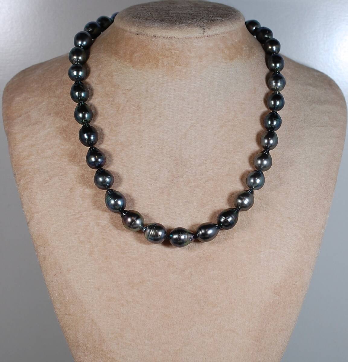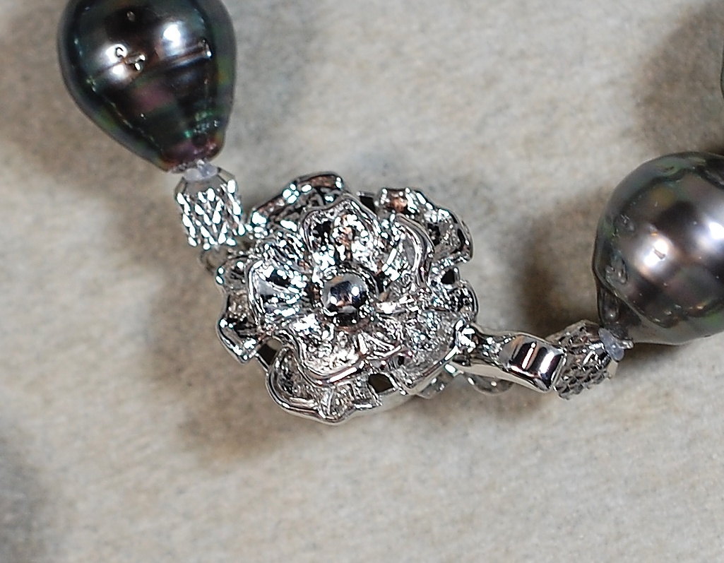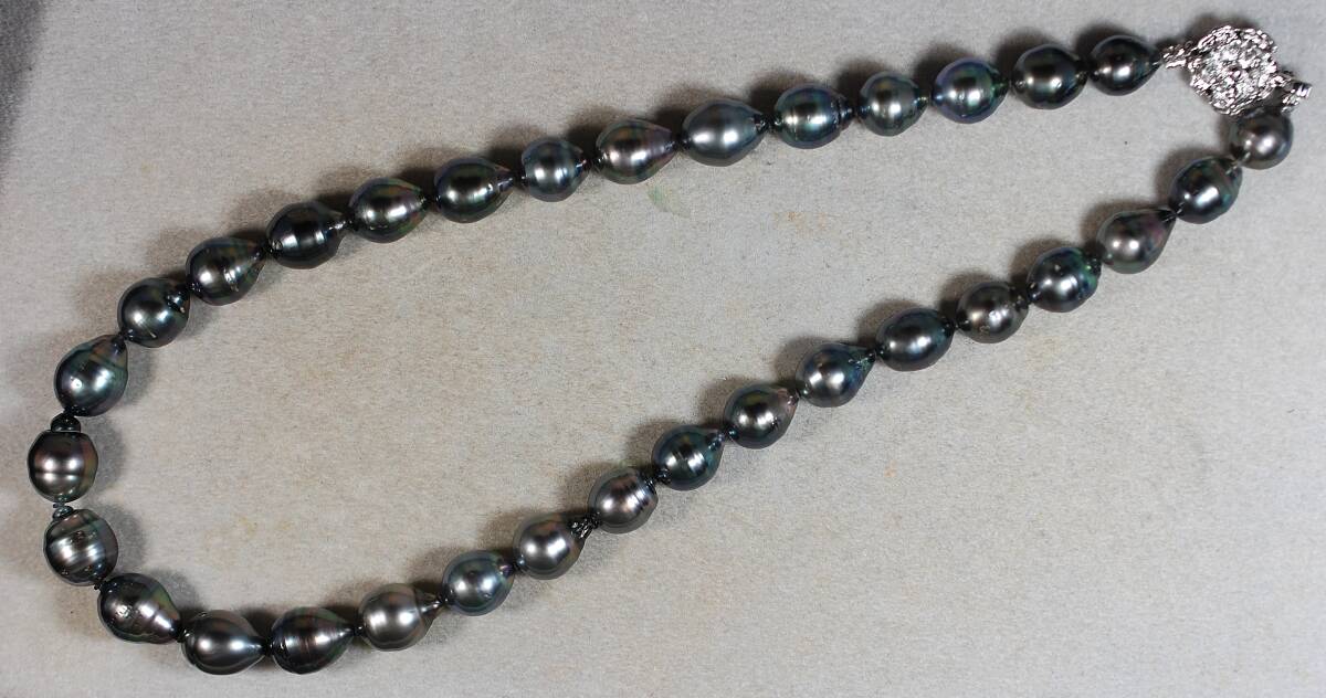 色艶照り美しいタヒチ産南洋黒蝶真珠は とても綺麗なネックレスです