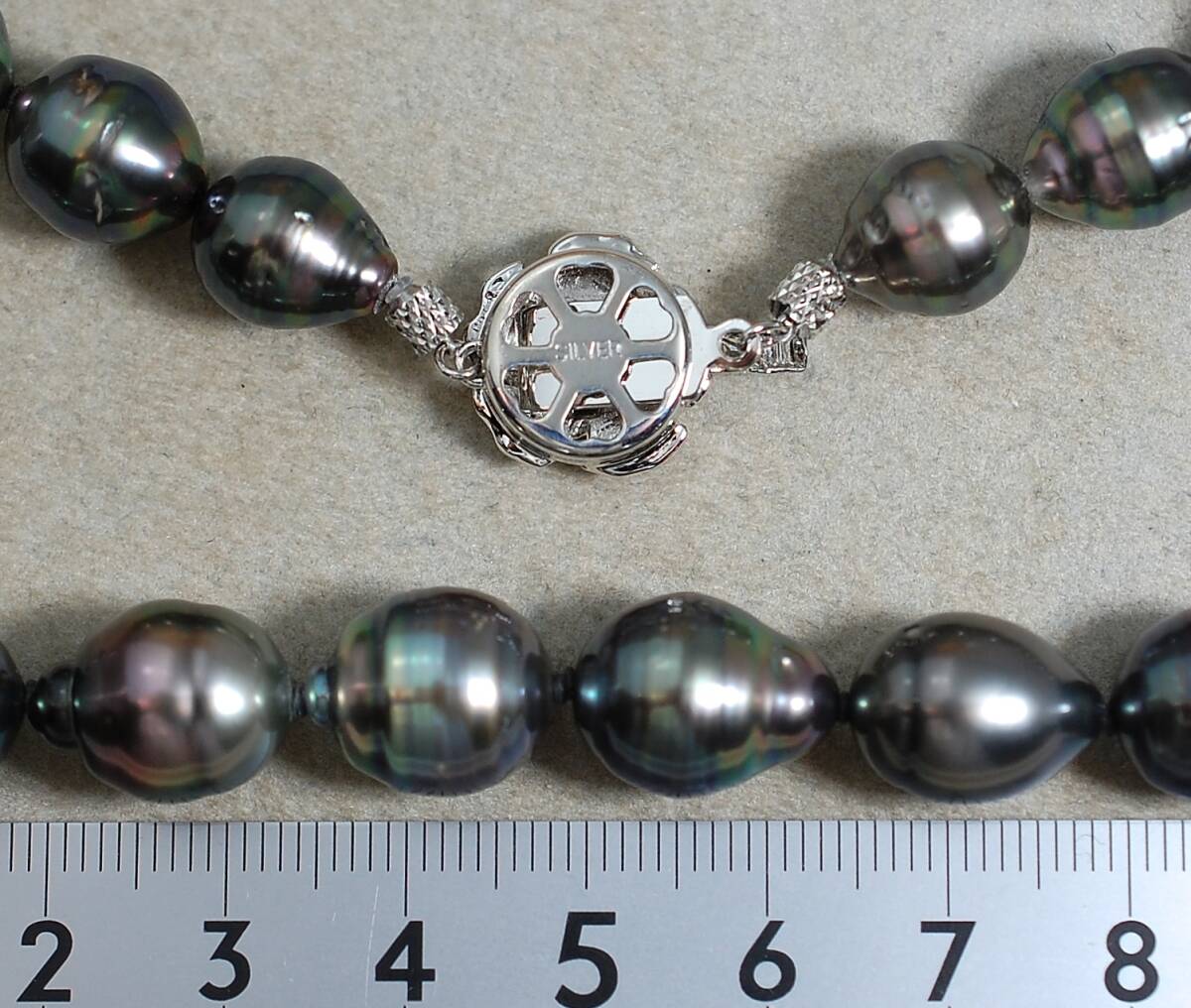 100~ソ付タヒチ産黒蝶ネックレス美しい艶照り大変良い南洋黒蝶真珠9.911.37㍉全長46cm64.3NC