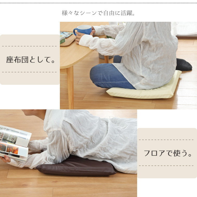 ・撥水効果でお手入れしやすいうえに、本革の風合いも楽しめる! ・広めのファスナーで中身のクッションが出し入れしやすい。 ・飲食店・居酒屋など業務用にもお勧めです。大量購入大歓迎! | |