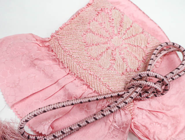 リサイクル商品のため、帯揚げにシボ伸び、帯締めの房付近にほつれがございますが、ご使用頂けると存じます。 |
