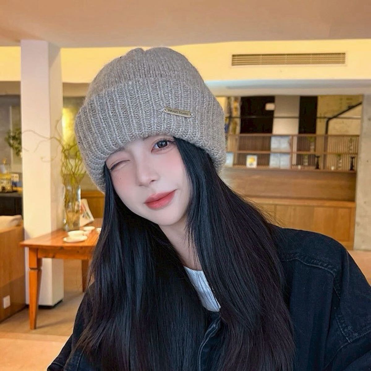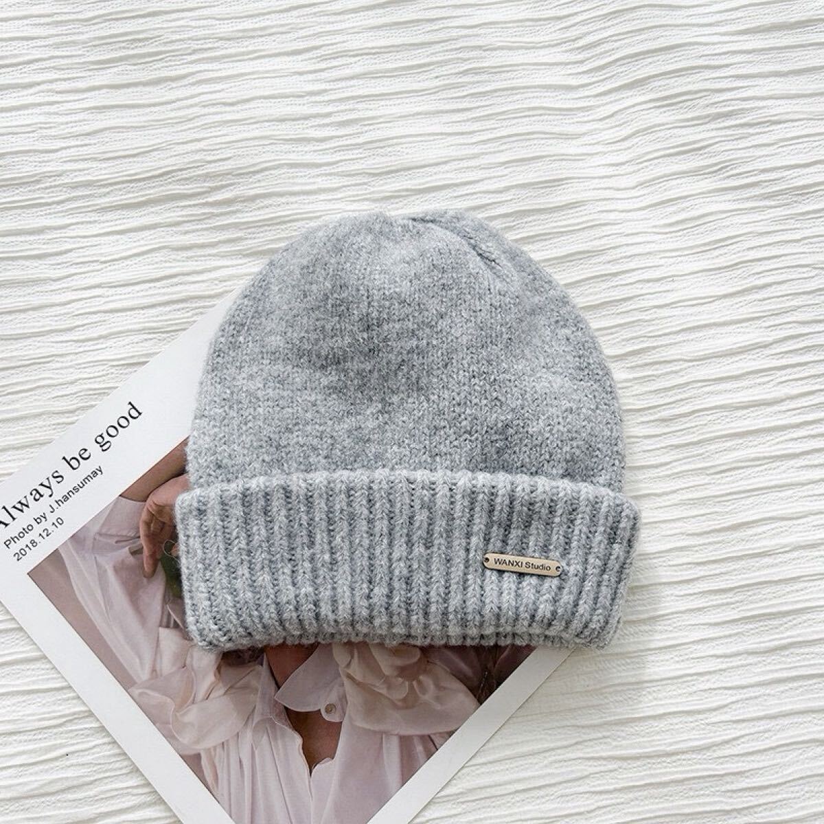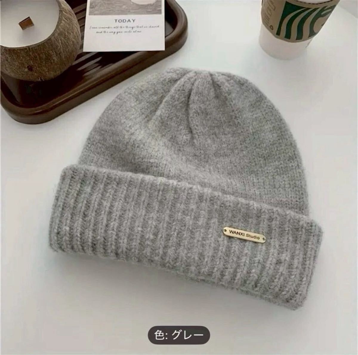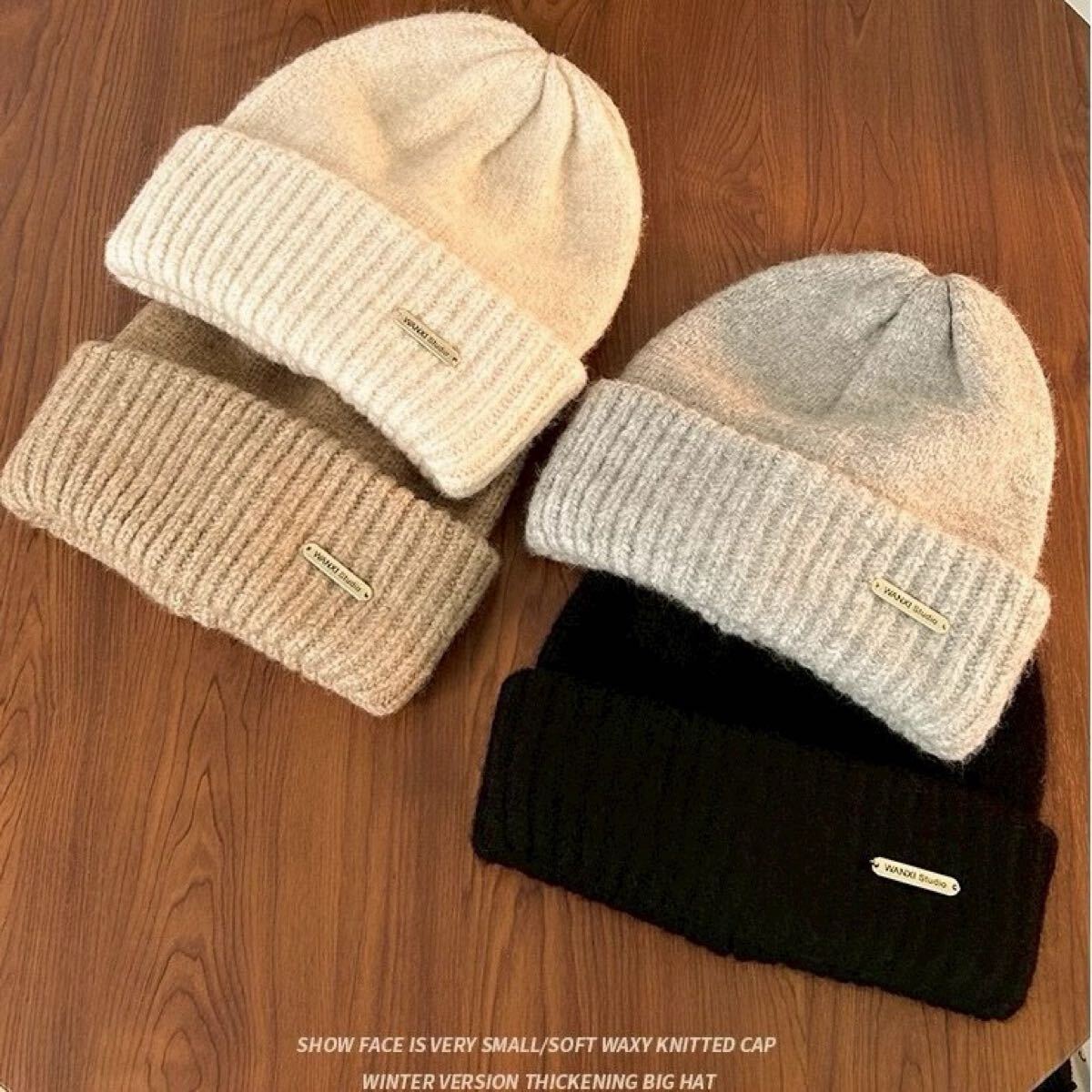 シンプルでどんなコーデにも合わせやすい、暖かいニット帽です