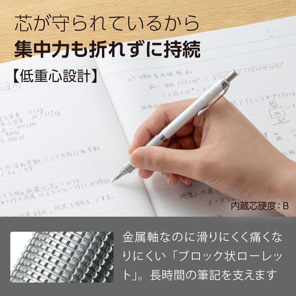 1秒を争う試験の時や、ふと思いついたアイデアをすばやくメモしたい時に活躍するシャープペンシルです。