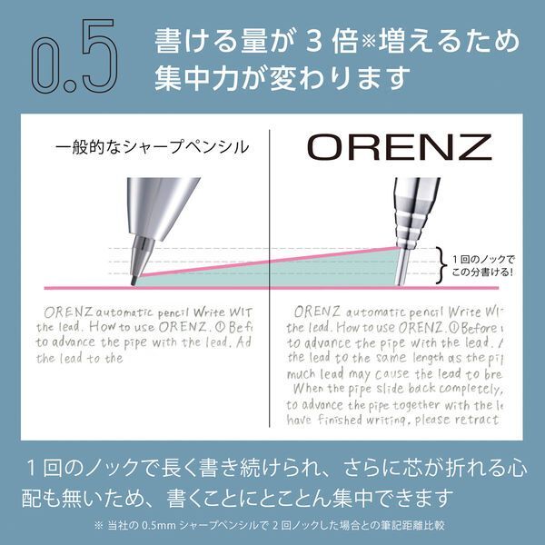 1回のノックで長く書き続けられ、さらに芯が折れる心配も無いため、書くことにとことん集中できます。