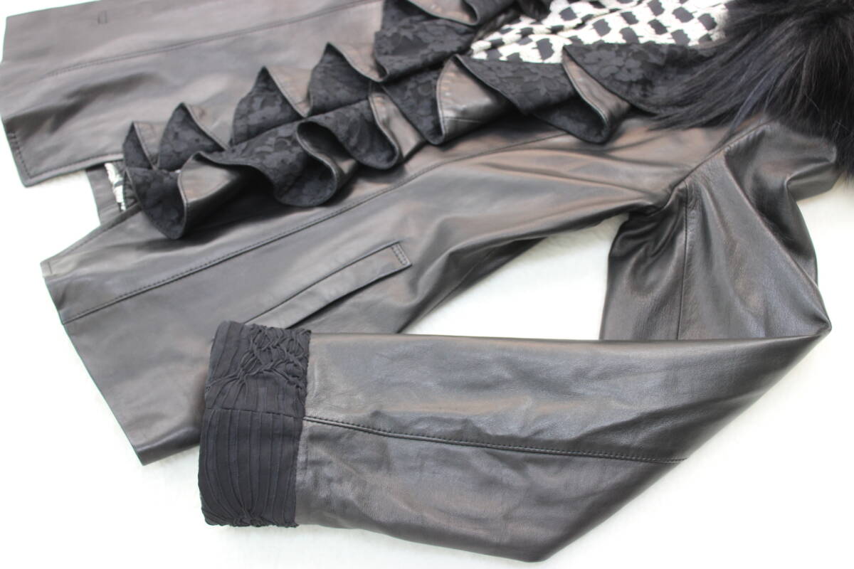 6704 新品タグ付き フォックスファー付き高級羊革レザージャケット ブラックMサイズ