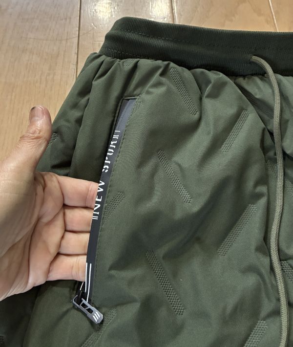 ウエスト部分は、幅広ゴムと内蔵ドローコードでの絞りです。