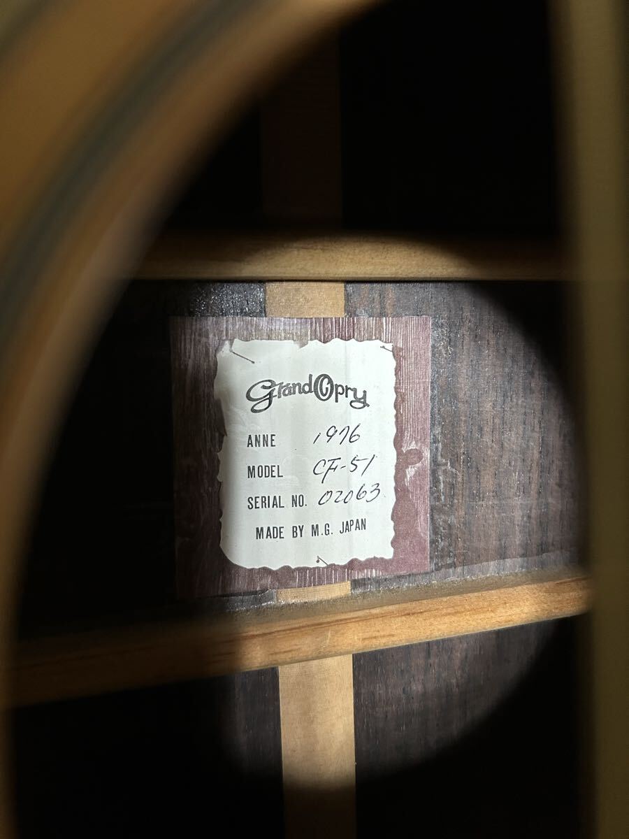 76年製・超お宝・grand・opry・CF-51・単板トップ・エボニー指板・超美品・マルハ楽器・高級モデル・爆鳴り・調整済み・ソフトケース付き