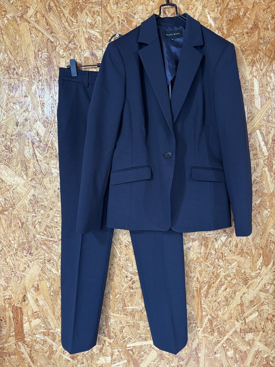 美品 TRANS WORK パンツスーツ セットアップ ビジネス ネイビー レディース 5022
