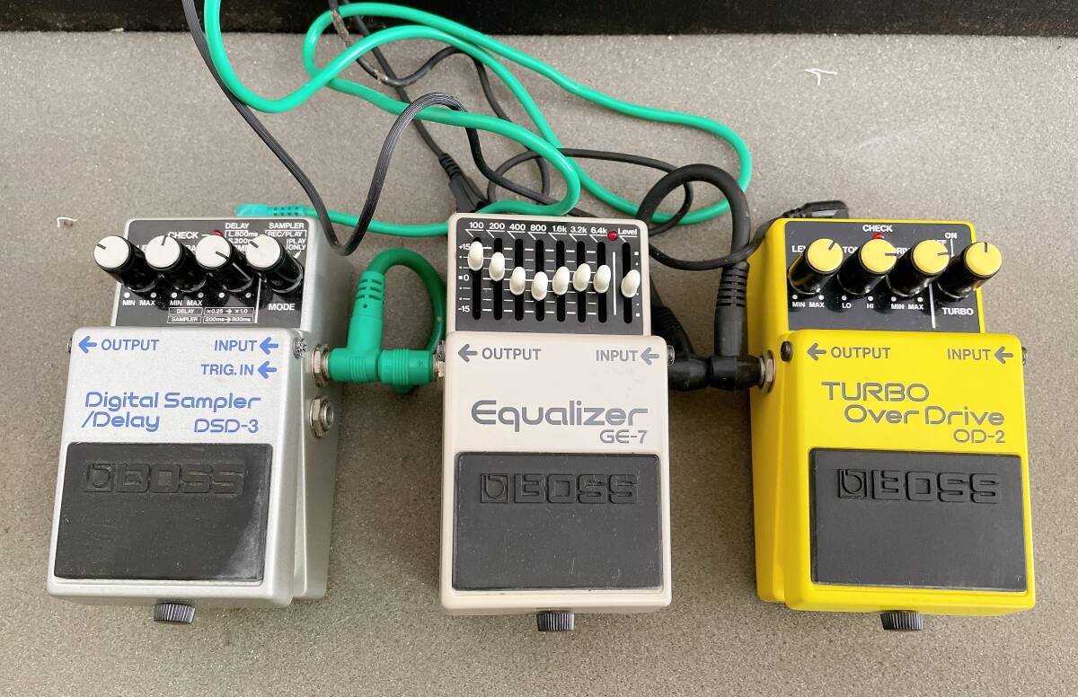 【BOSS GE-7 Equalizer・mus-D/MDE-103 パワーサプライ エフェクターボード ケース付】DSD-3/OD-2/現状品/711-340