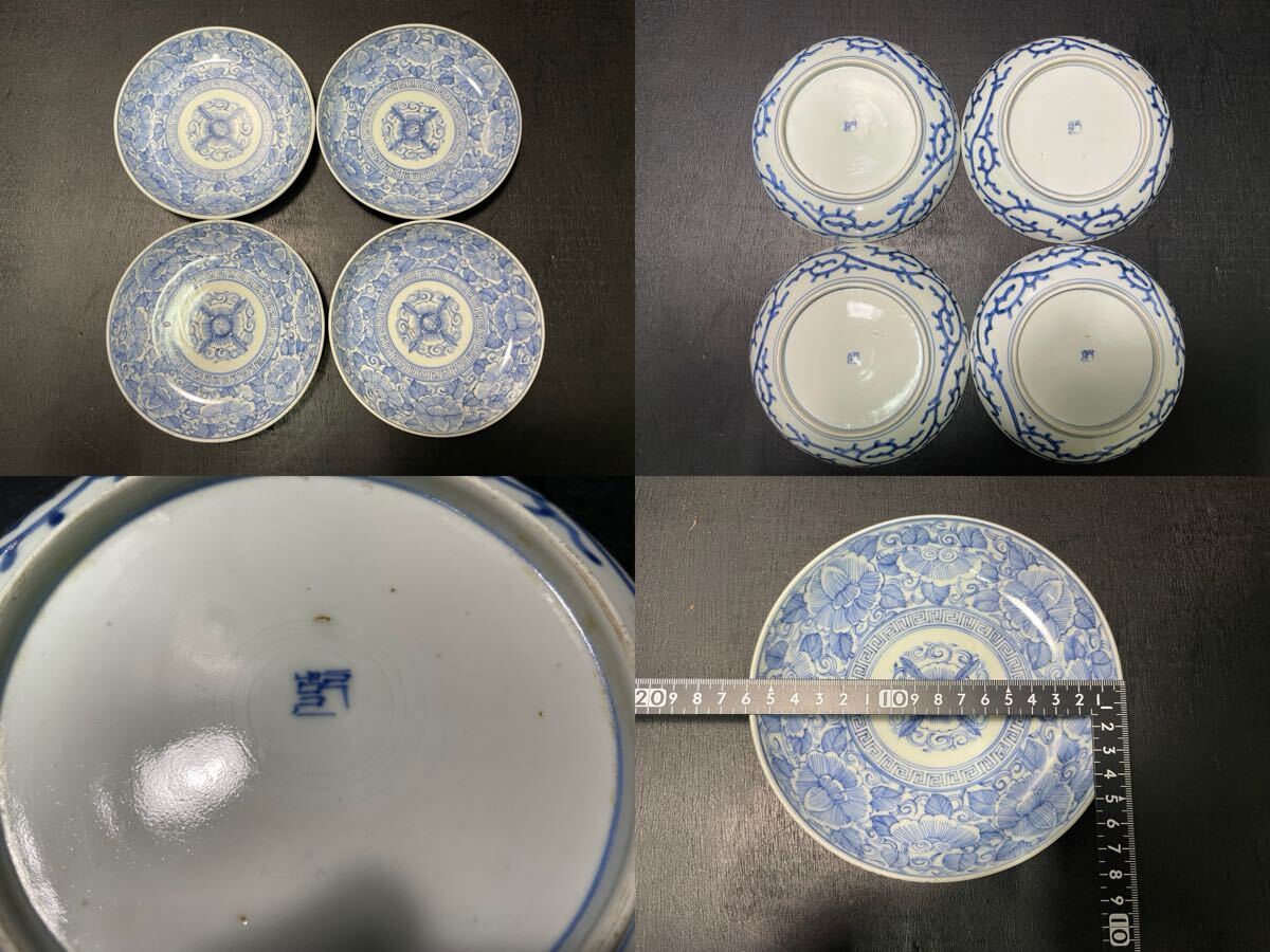 古伊万里 江戸時代 なます皿 皿 小皿 染付 線画 草花柄 和食器 時代物 アンティーク 骨董 インテリア コレクション