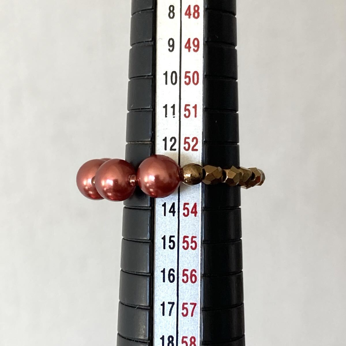 12-14号 ビーズ リング  指輪 パールビーズのシンプルリング レッド×ブロンズ です。
