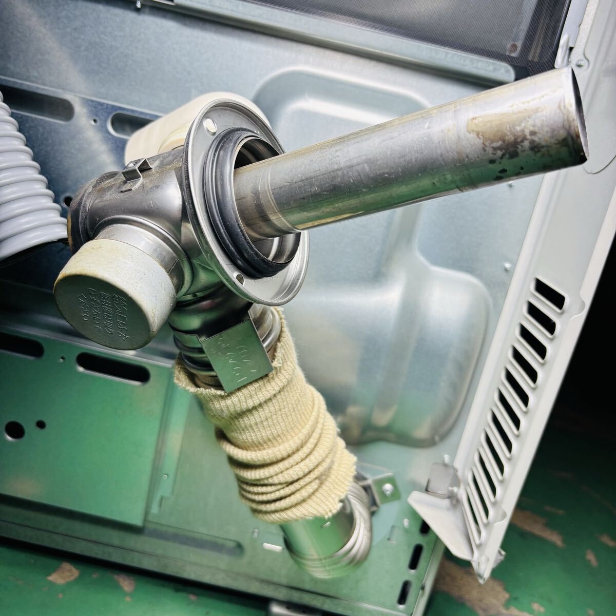 外壁側に必要な給排気筒やフードなどの取り付け部材は欠品しています。