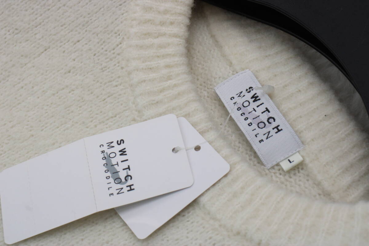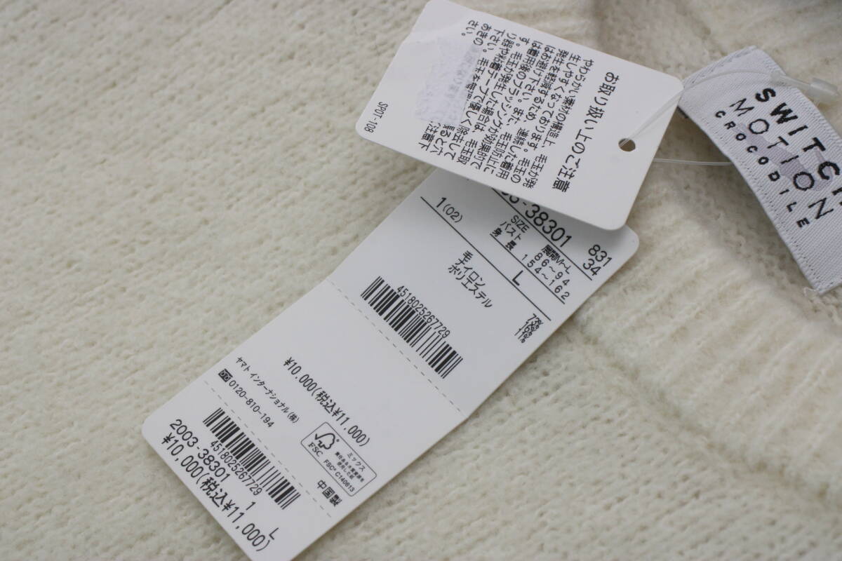 6457 新品タグ付き ウール混クルーネックニットプルオーバー オフホワイトL 定価¥11,000税込み