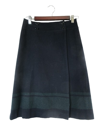 ナイスクラップ NICE CLAUP スカート ウール バイカラー 巻きスカート ひざ丈 ネイビー QQQ レディース