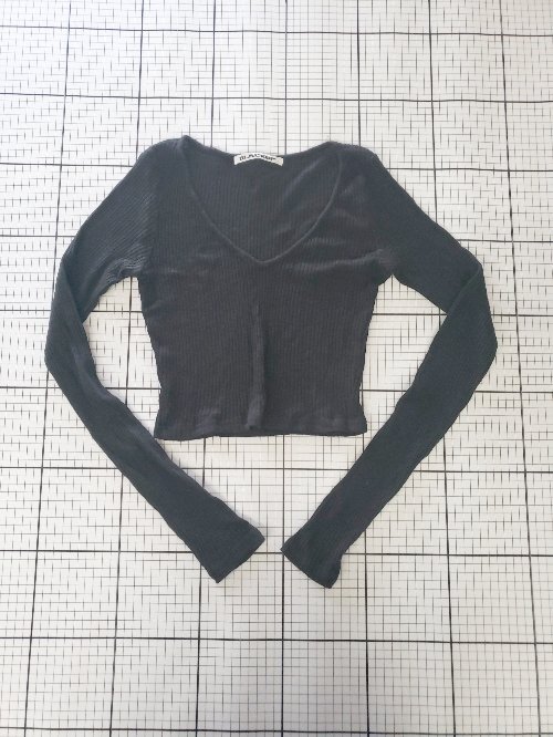 ◇ Θ BLACKUP ブラックアップ ショート丈 長袖 ロンT カットソー サイズ表記なし ブラック系 レディース E