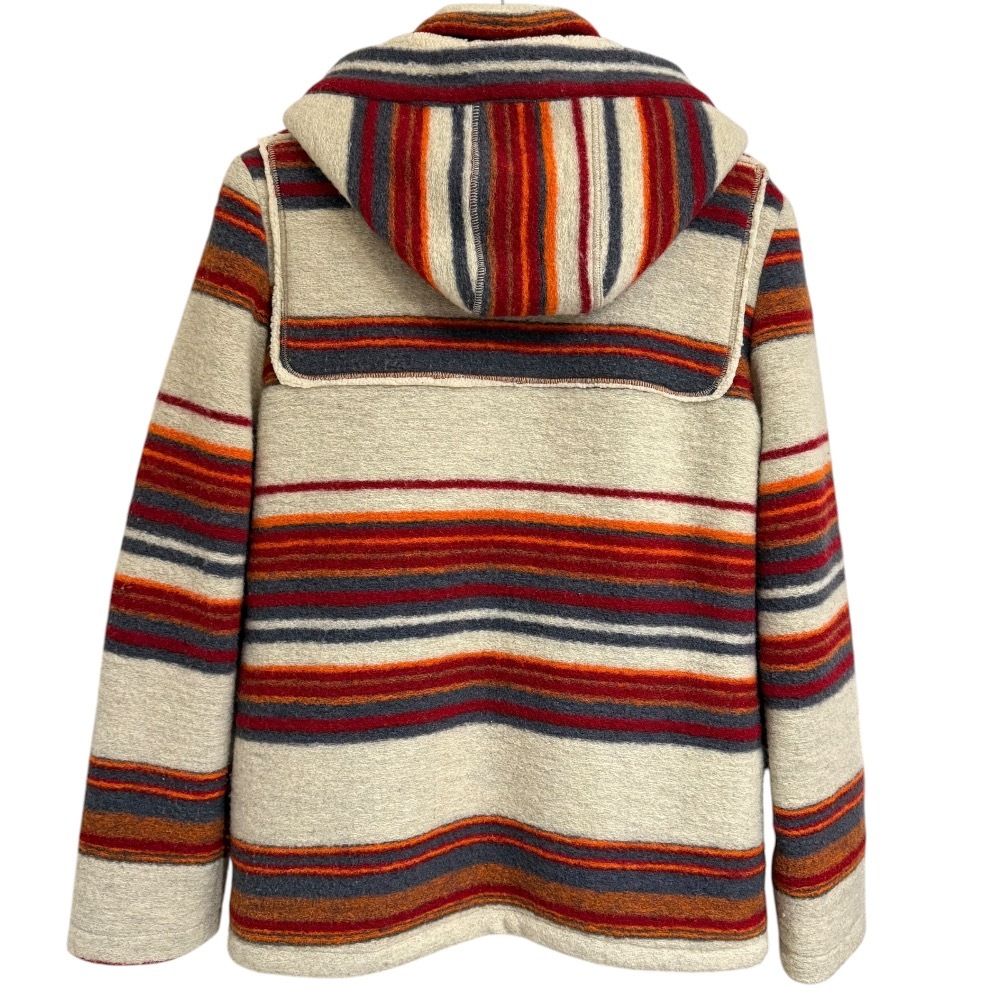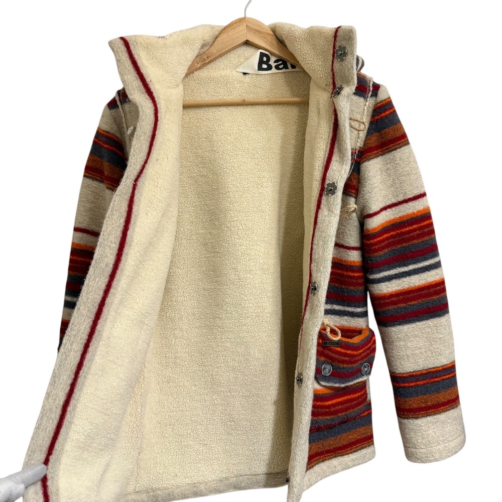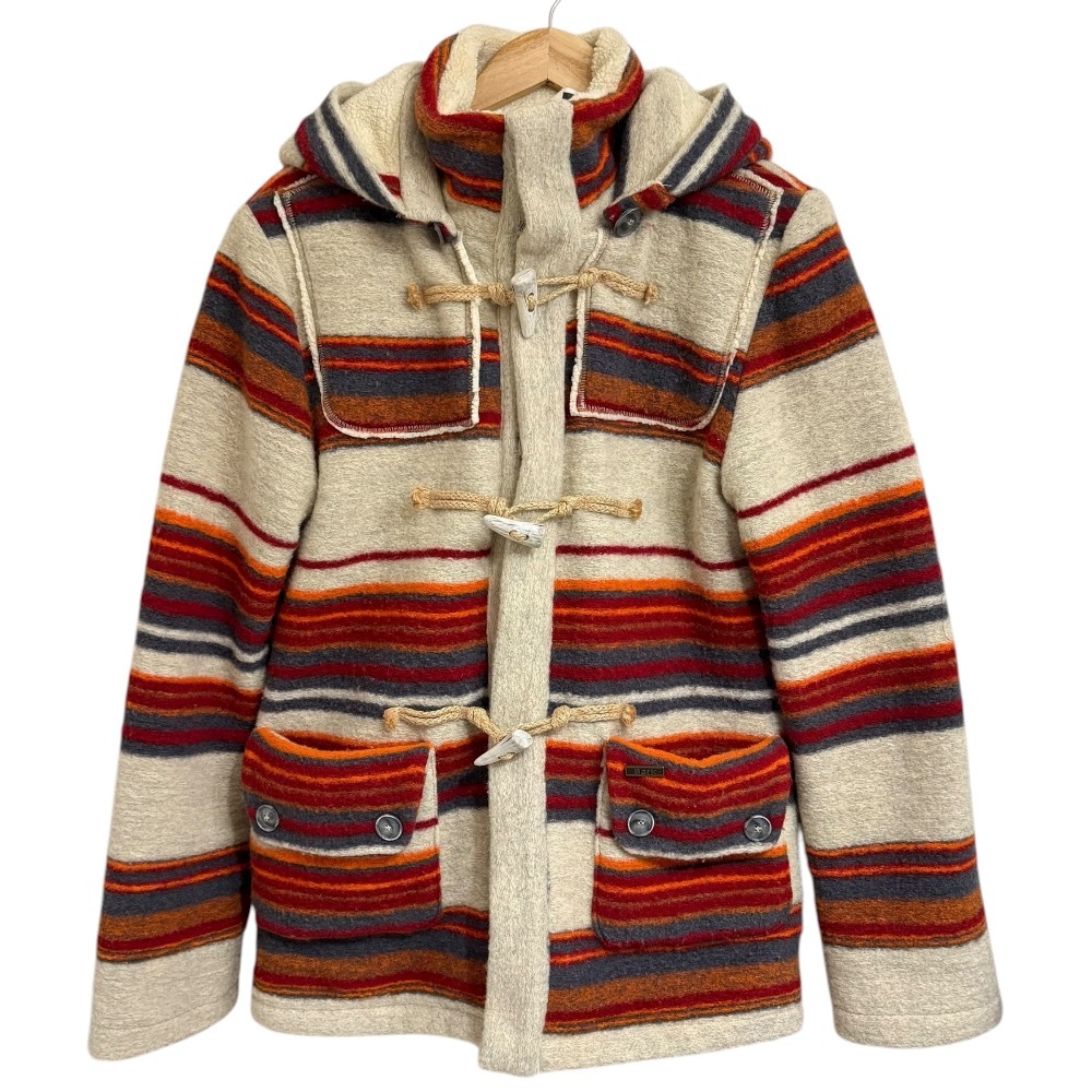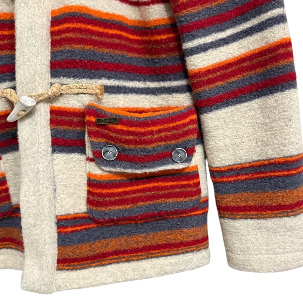 商品名:Bark バーク ボーダー柄 ダッフルコート S ベージュ×レッド系