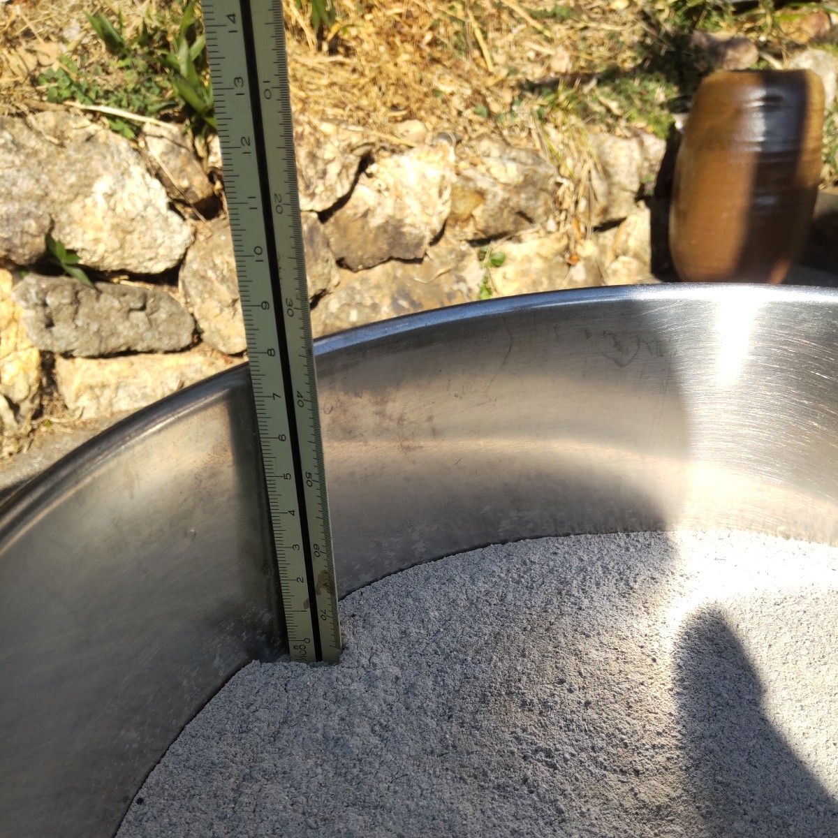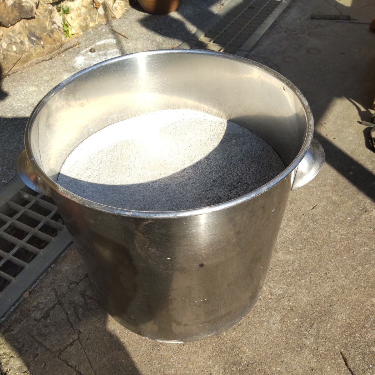 (網目の細かいフルイにかけてますので、サラサラの綺麗な灰です)(わずかに消え炭の端材が混じっているかもしれません)