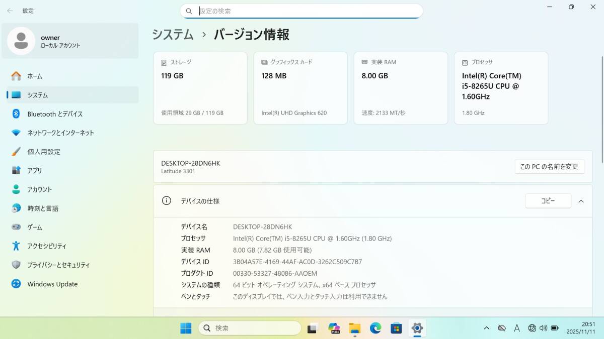 #20251126 Dell Latitude 3301 FHD(1920*1080) Win11 Core i5-8265 8GB/128G