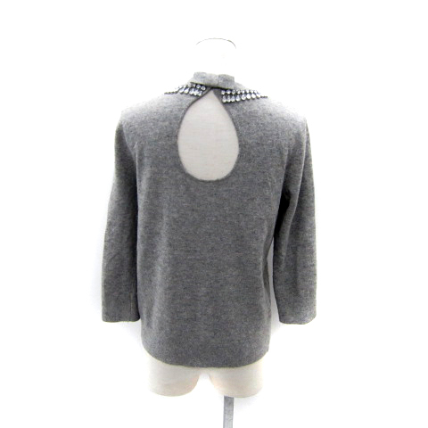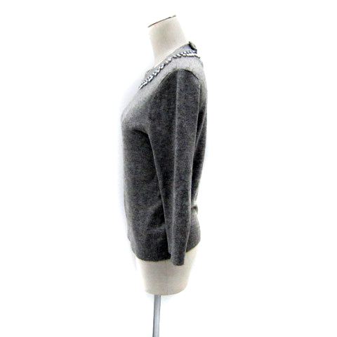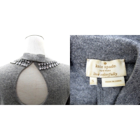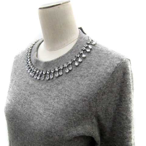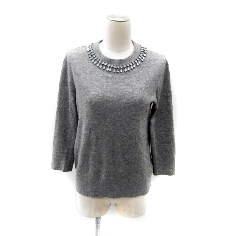 ケイトスペード KATE SPADE ニット カットソー 七分袖 クルーネック ビジュー装飾 S グレー NJMU5503 /SY22 ■GY53 レディース