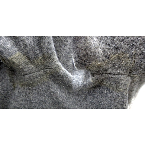 【状態】この商品には下記のようなダメージがあります。 ・脇下汗ジミ ・首周り黄ばみ汚れ ・身頃部分汚れ ・毛玉 ・ブランドタグ汚れ ※使用感の他、上記のようなダメージがある中古品です。掲載写真や記載内容をご確認いただき、ご理解の上ご購入ください。