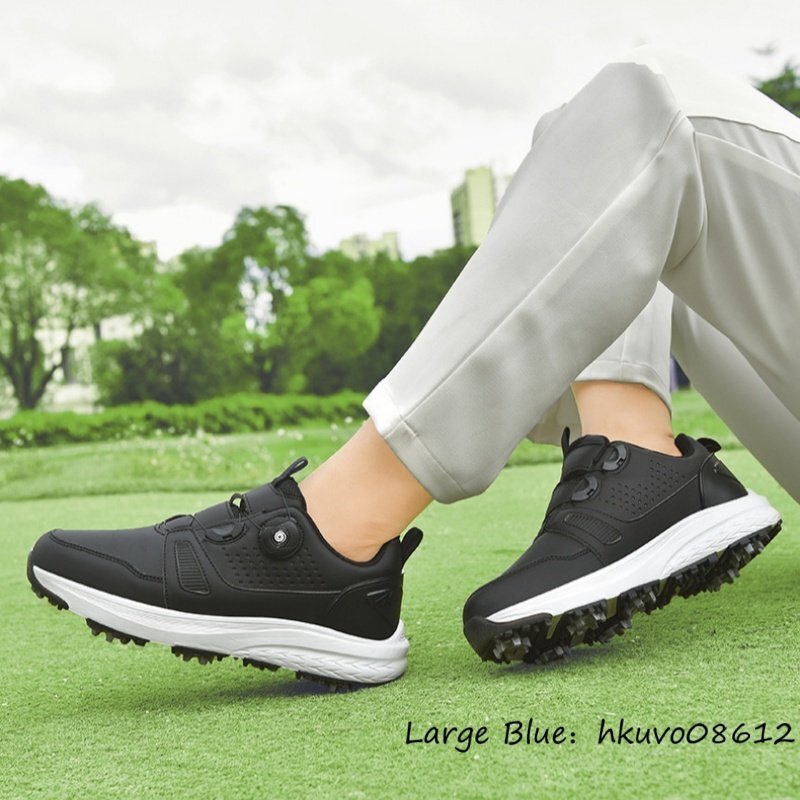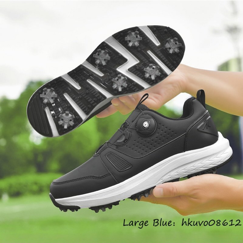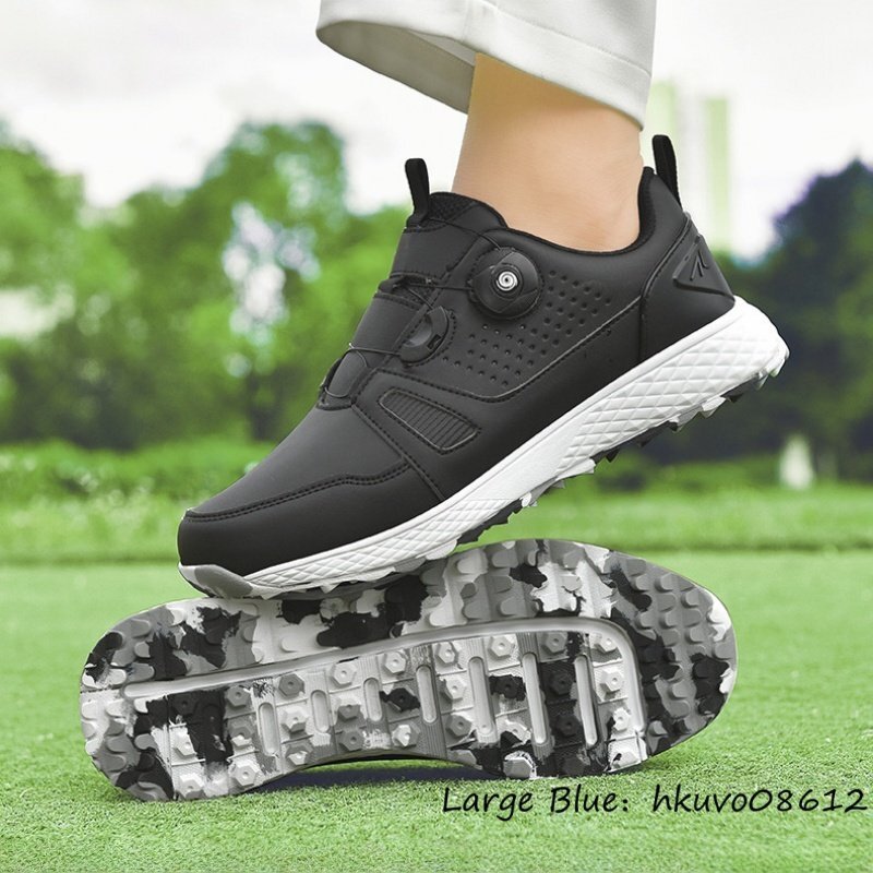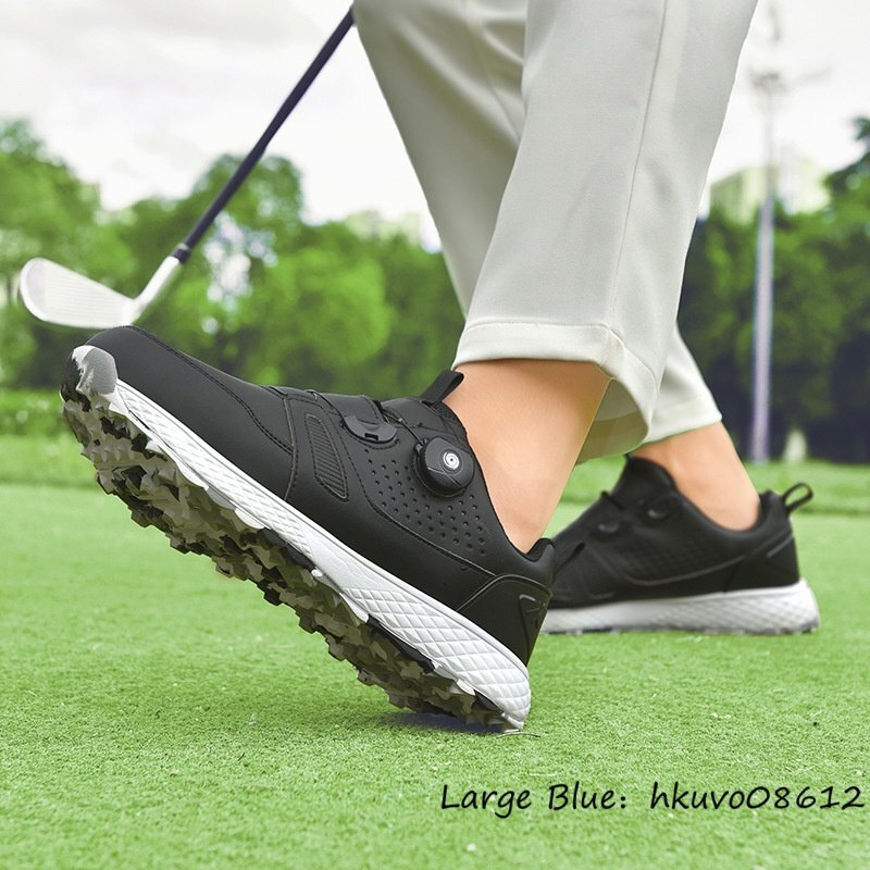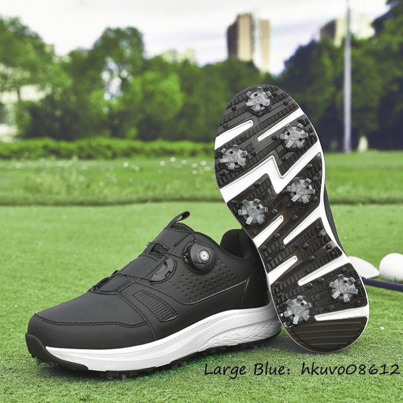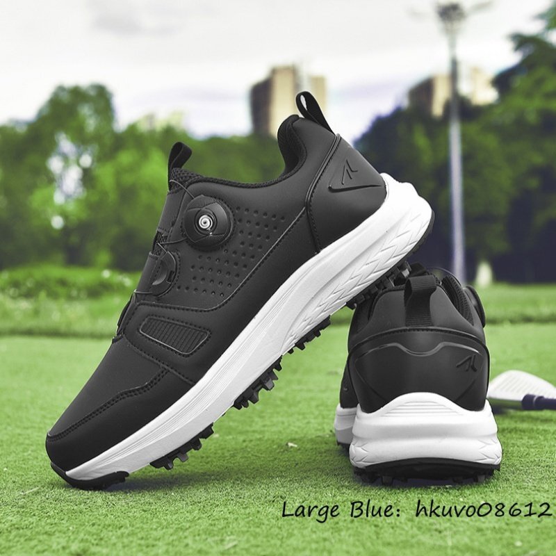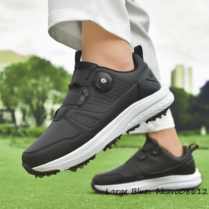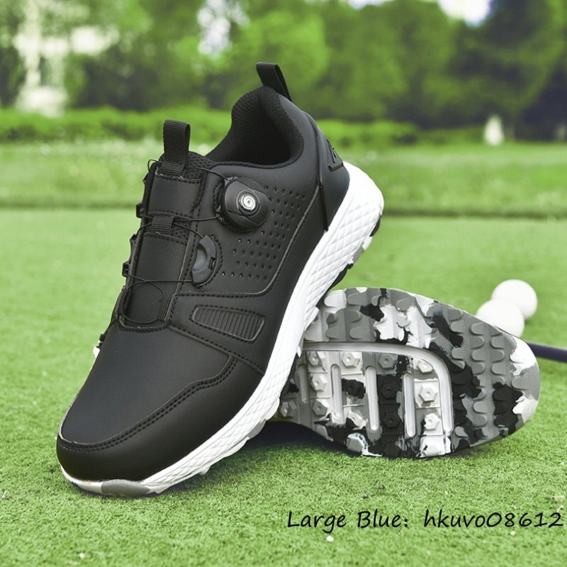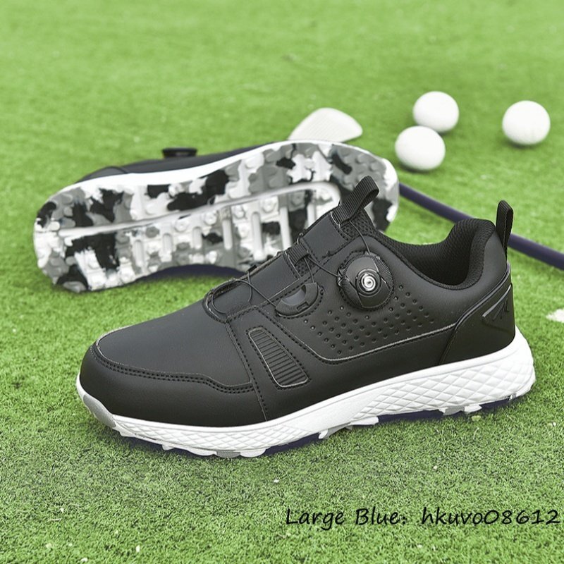 高品質■ゴルフシューズ メンズ 男女兼用 ダイヤル式 スパイクレス 運動靴 スニーカー ウォーキング スポーツシューズ 耐久性 黒系 26.5cm