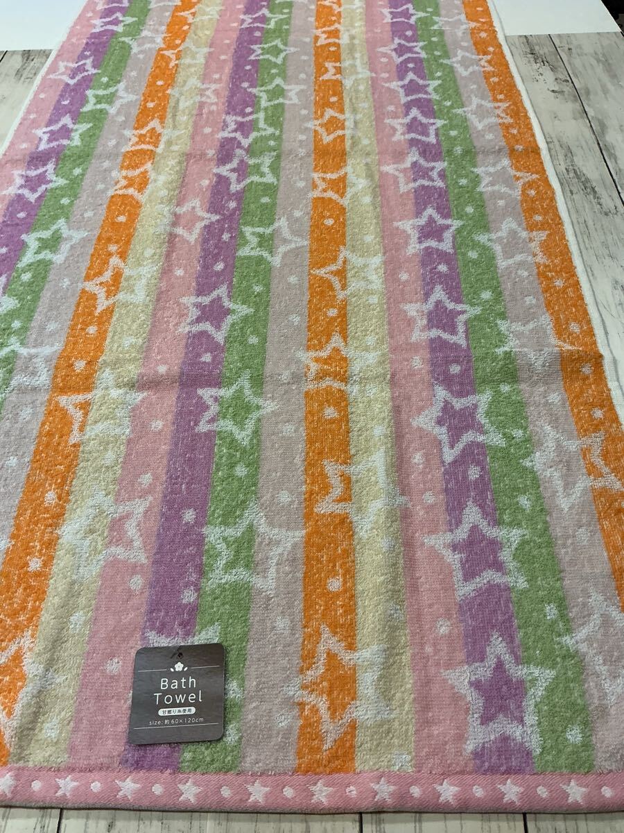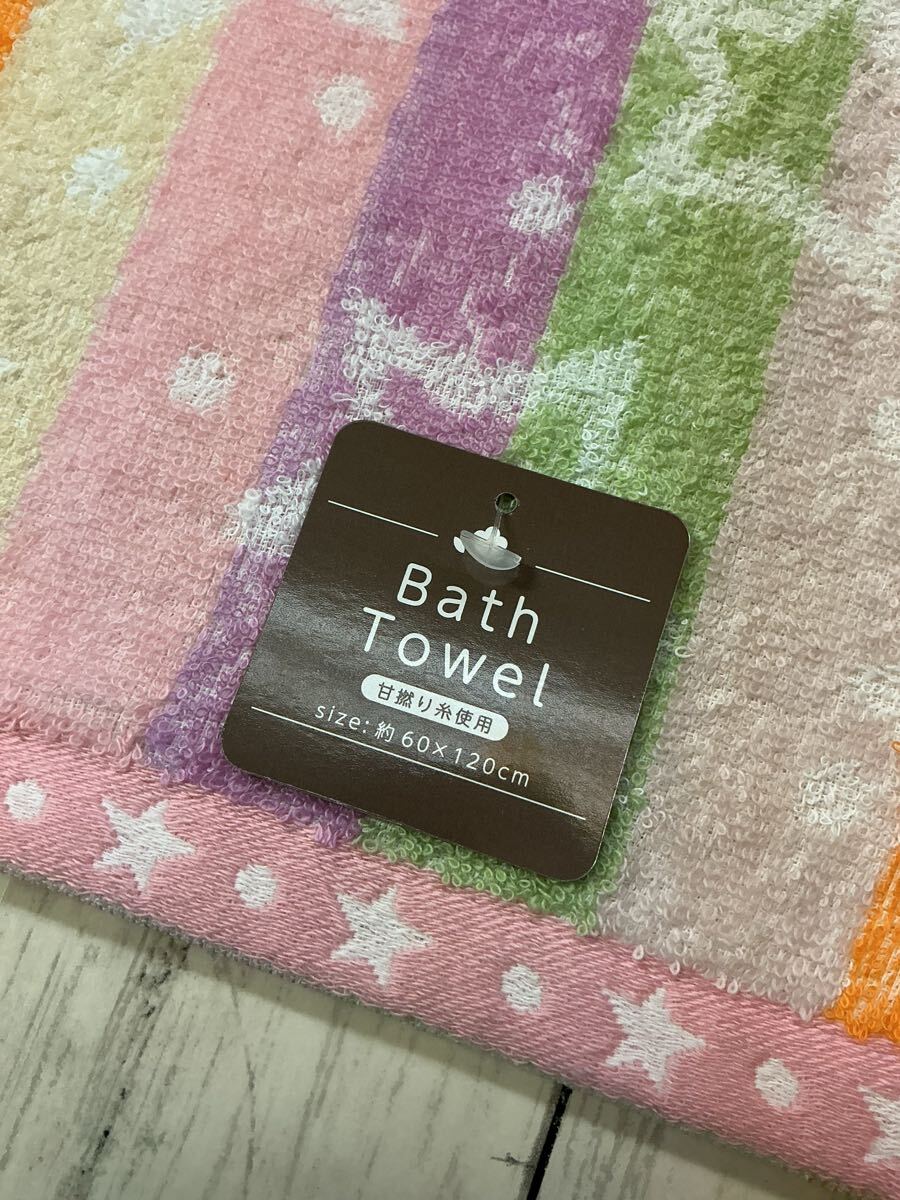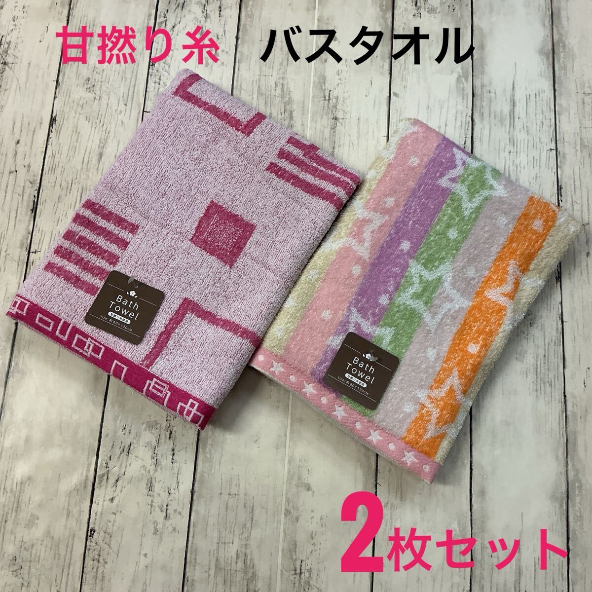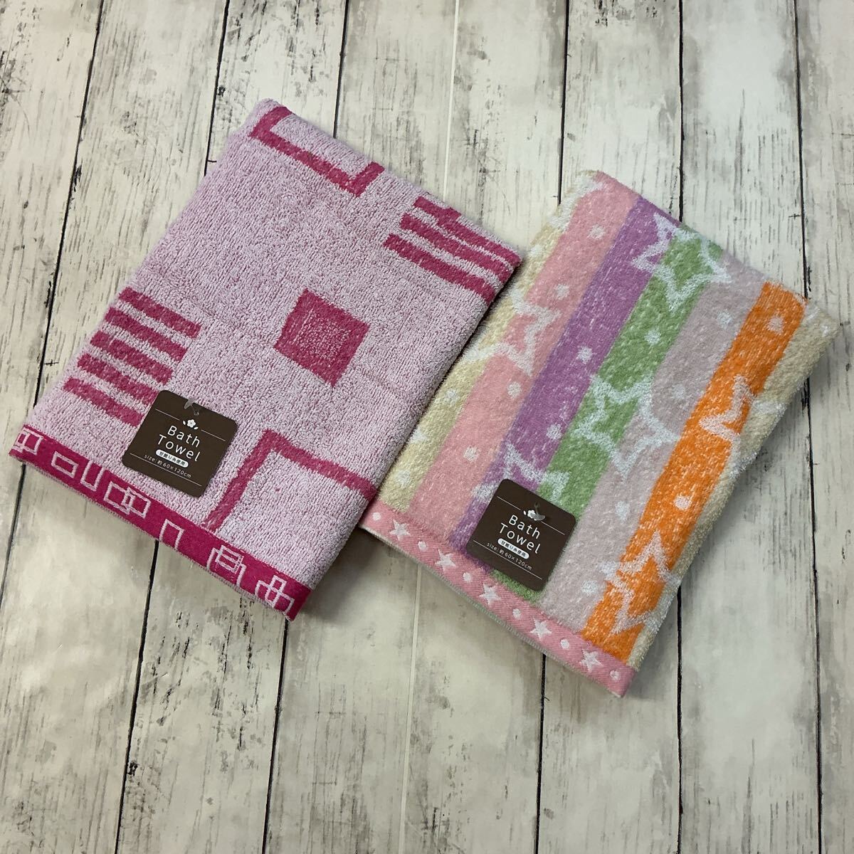 ・内容:バスタオル 2枚セット(幾何柄ピンク/カラフル星柄 各1枚)