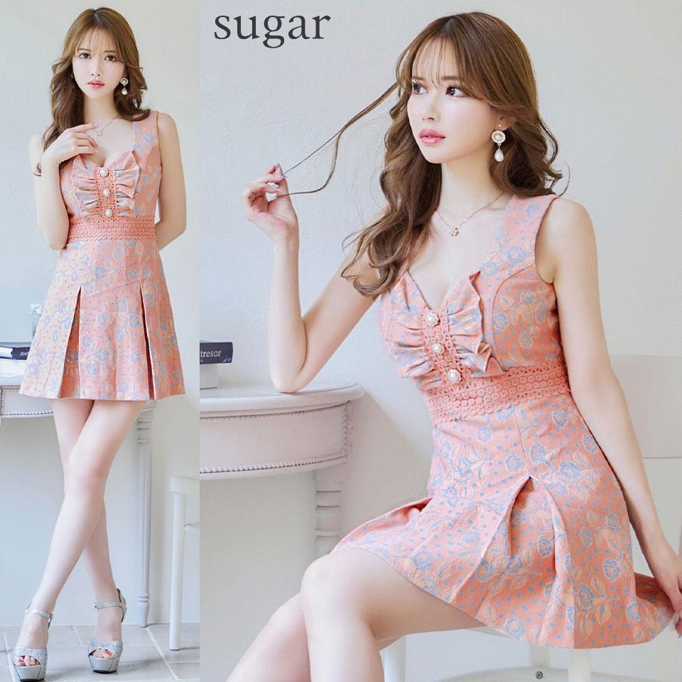 フラワーレース/ ドットレース/ バストギャザー/ パールボタン/ ノースリーブ/ プリーツ/ Aライン/ フレア/ ミニドレス/ キャバドレス