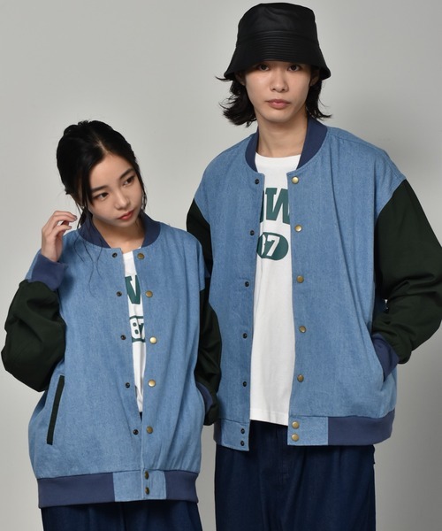 参考商品名:デニム切替スタジャン/レディース メンズ