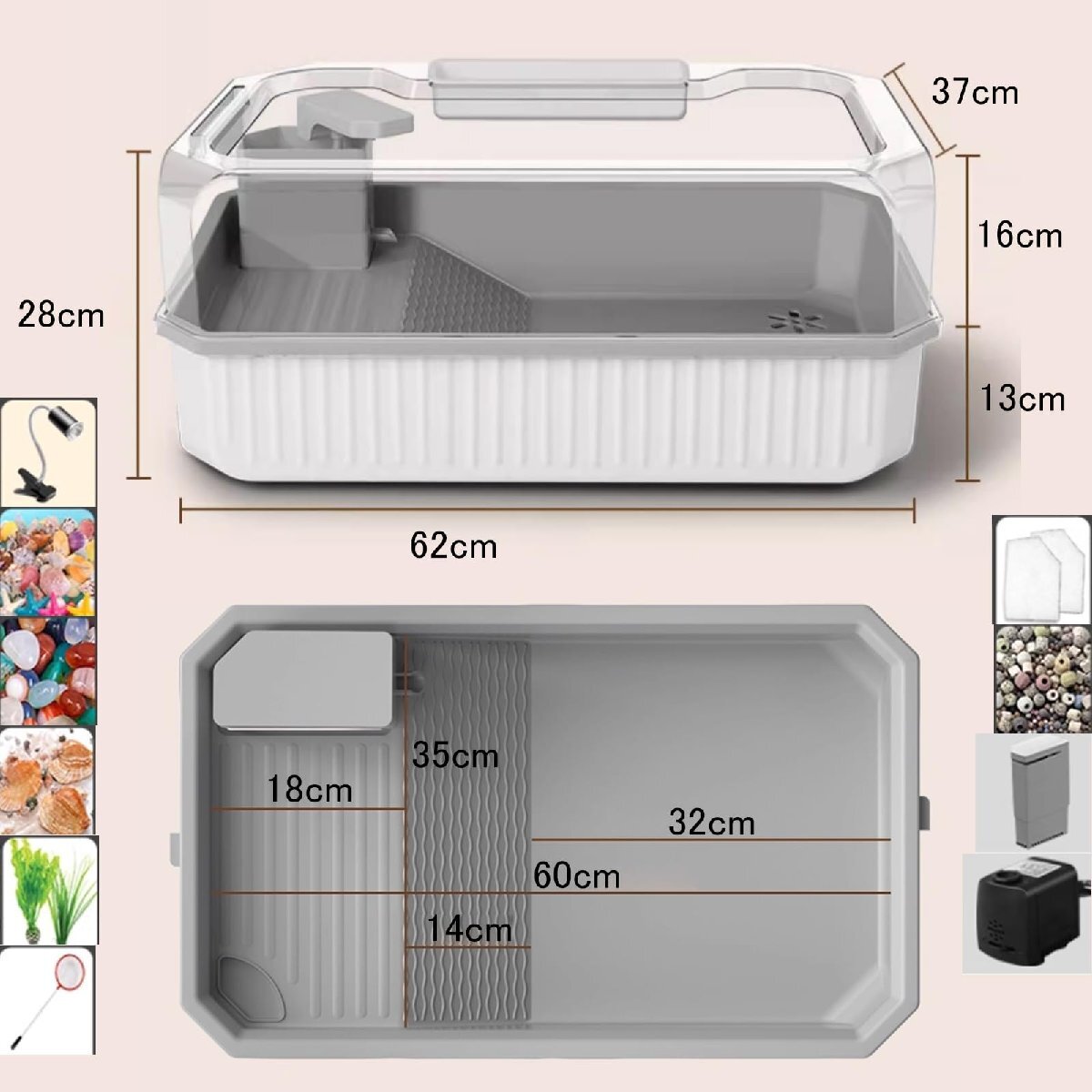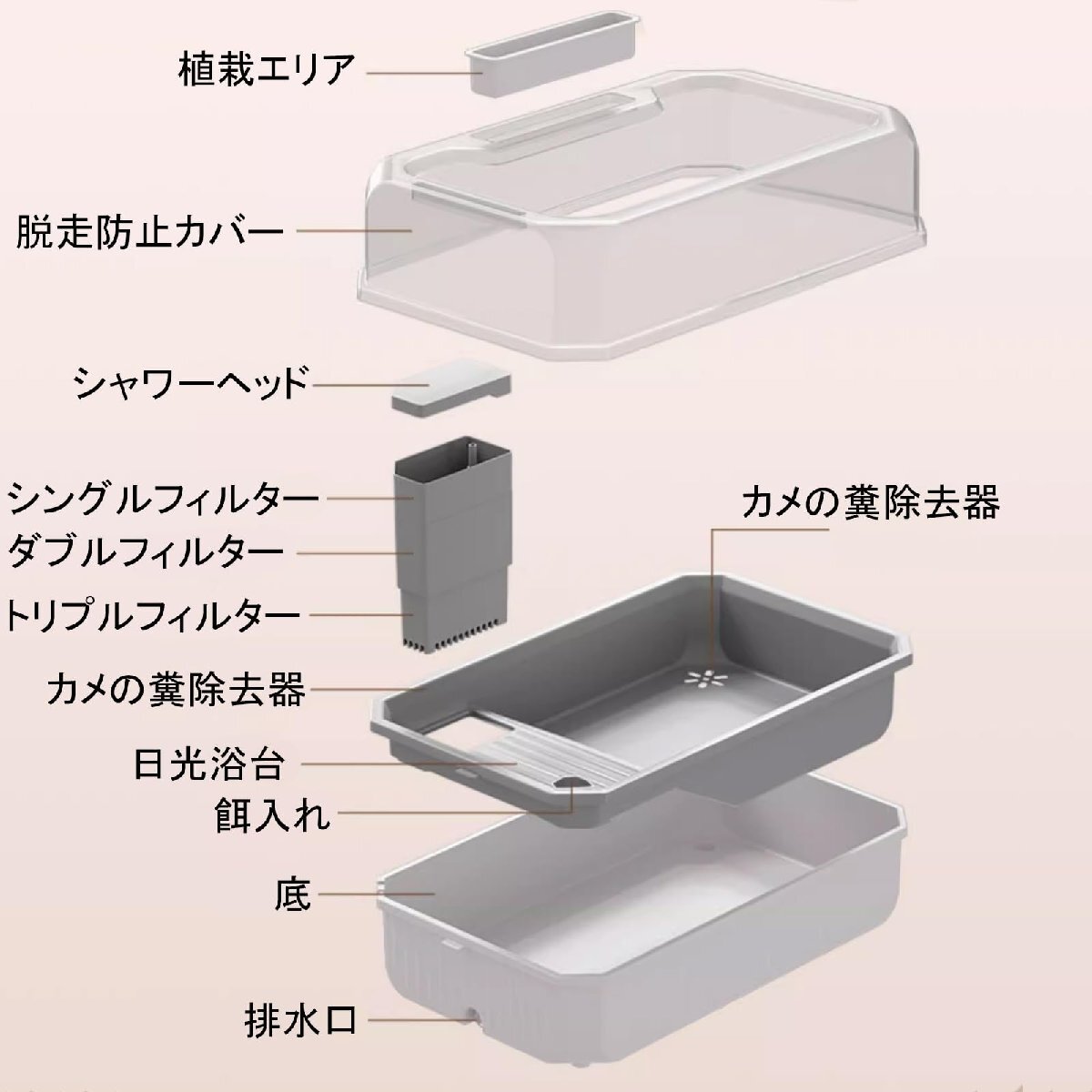 多重ろ過: 水槽 亀 かめ 水槽 多重ろ過システムが継続的に水を浄化し、臭いを効果的に低減し、きれいな水質を維持することで、水槽の長期的なケアを実現します。