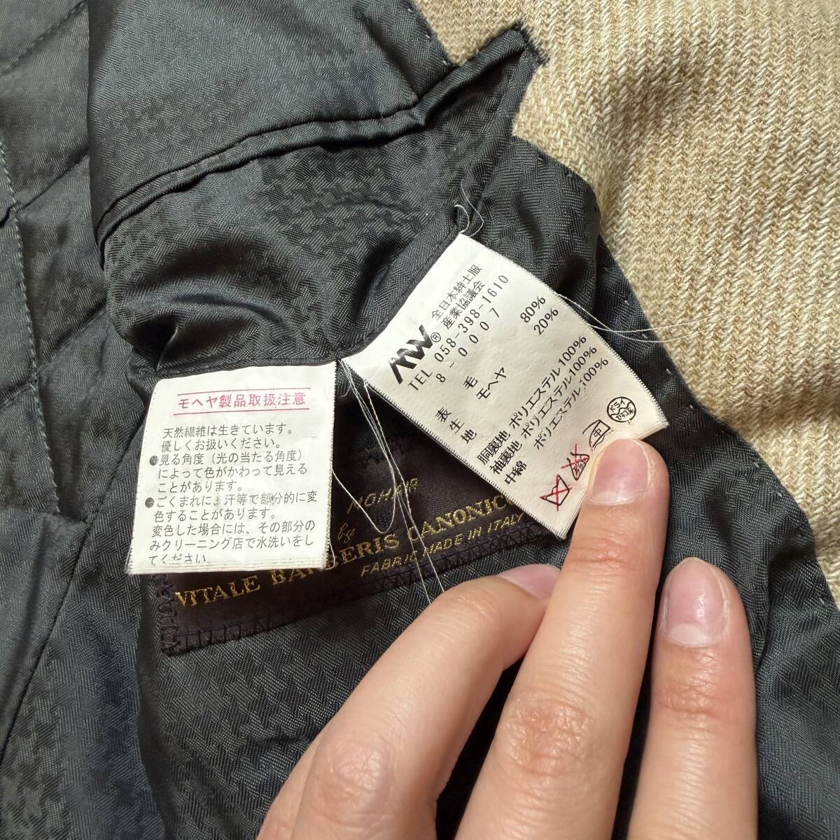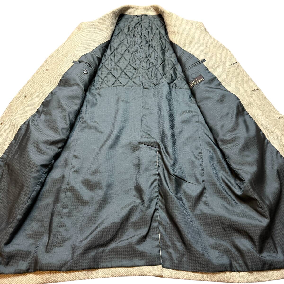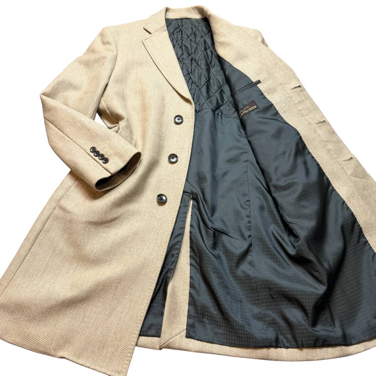 美品 CANONICO 3563 チェスターコート ウール モヘア カノニコ 千鳥格子 千鳥柄 最高級 ロングコート ベージュ 比翼 キルティング裏地